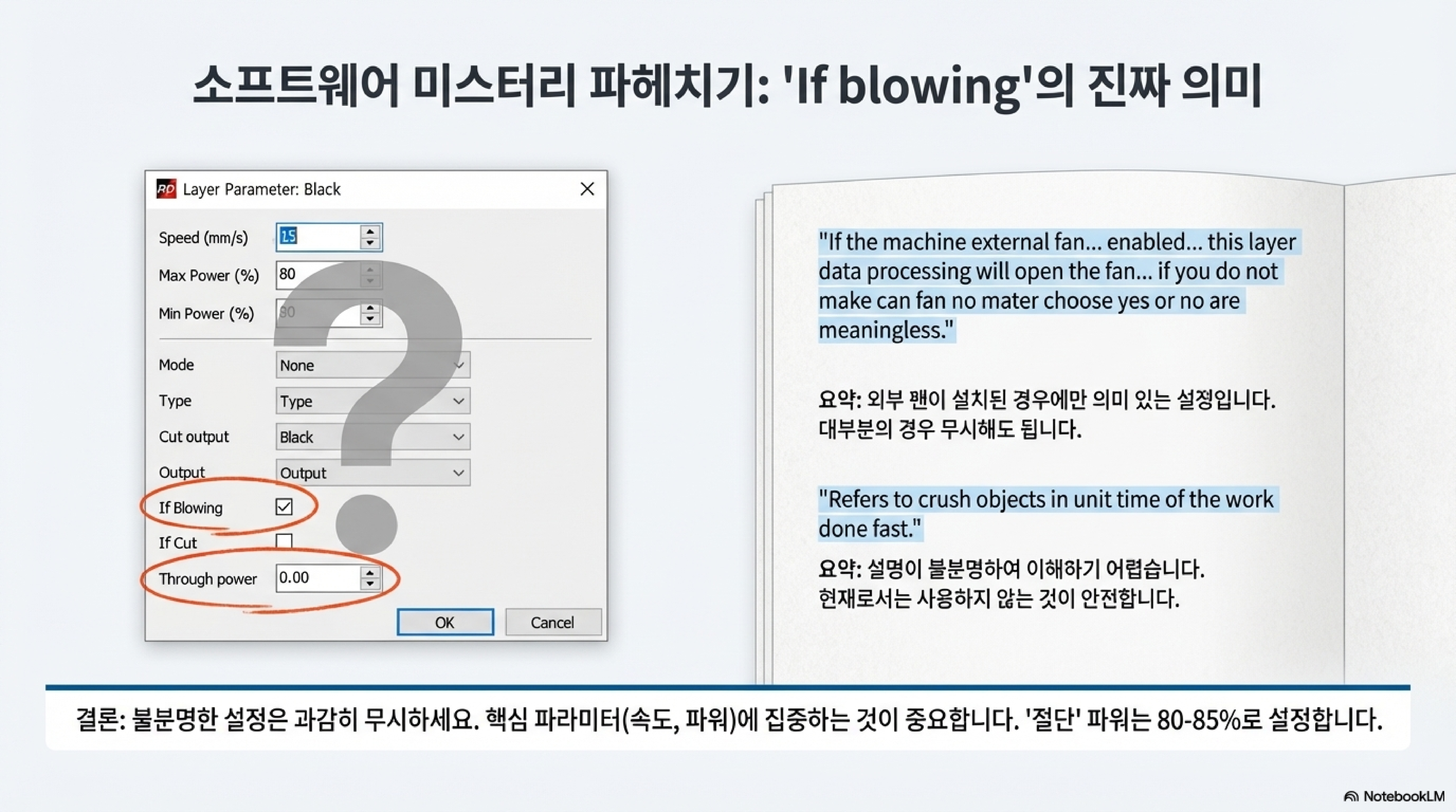문제가 생겼을 때 공식 설명서를 찾아보는 것은 당연한 수순입니다. 하지만 때로는 설명서가 도움은커녕 더 큰 혼란을 주기도 합니다. 제 경우, 'if blowing'과 'through power'라는 두 가지 설정이 특히 이해하기 어려웠습니다.