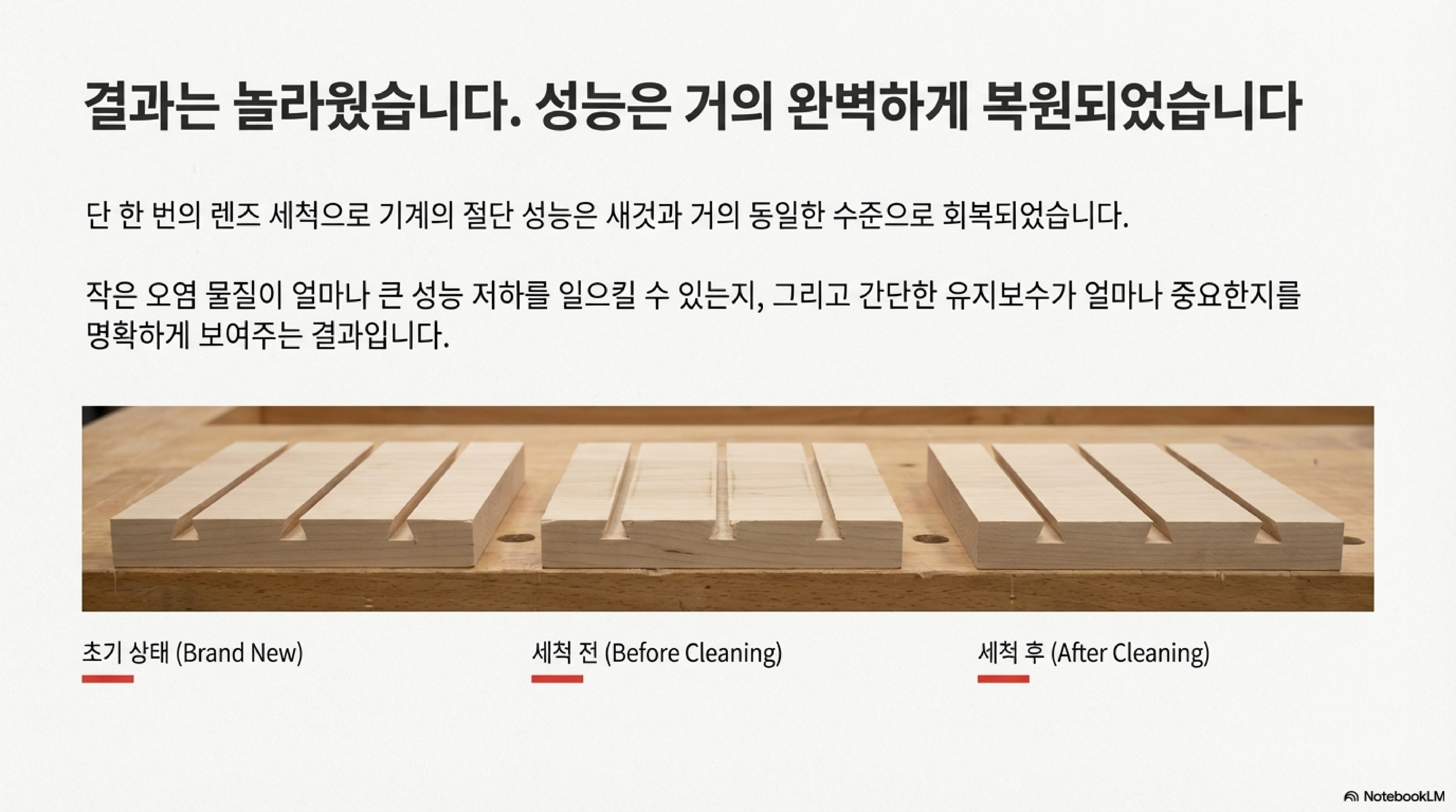 이것은 제게 스스로를 돌아보게 만드는 겸허한 교훈이었습니다. 프로젝트를 빨리 끝내고 싶은 마음에, 공기 보조 장치를 켜는 것 같은 사소한 단계를 건너뛰고 싶은 유혹에 빠지기 쉽습니다. 하지만 이번 경험은 단 15분간의 편의를 위한 절차 생략이 기계의 핵심 성능을 망가뜨려, 앞으로의 수많은 작업 시간을 조용히 훔쳐갈 수 있다는 것을 증명했습니다.