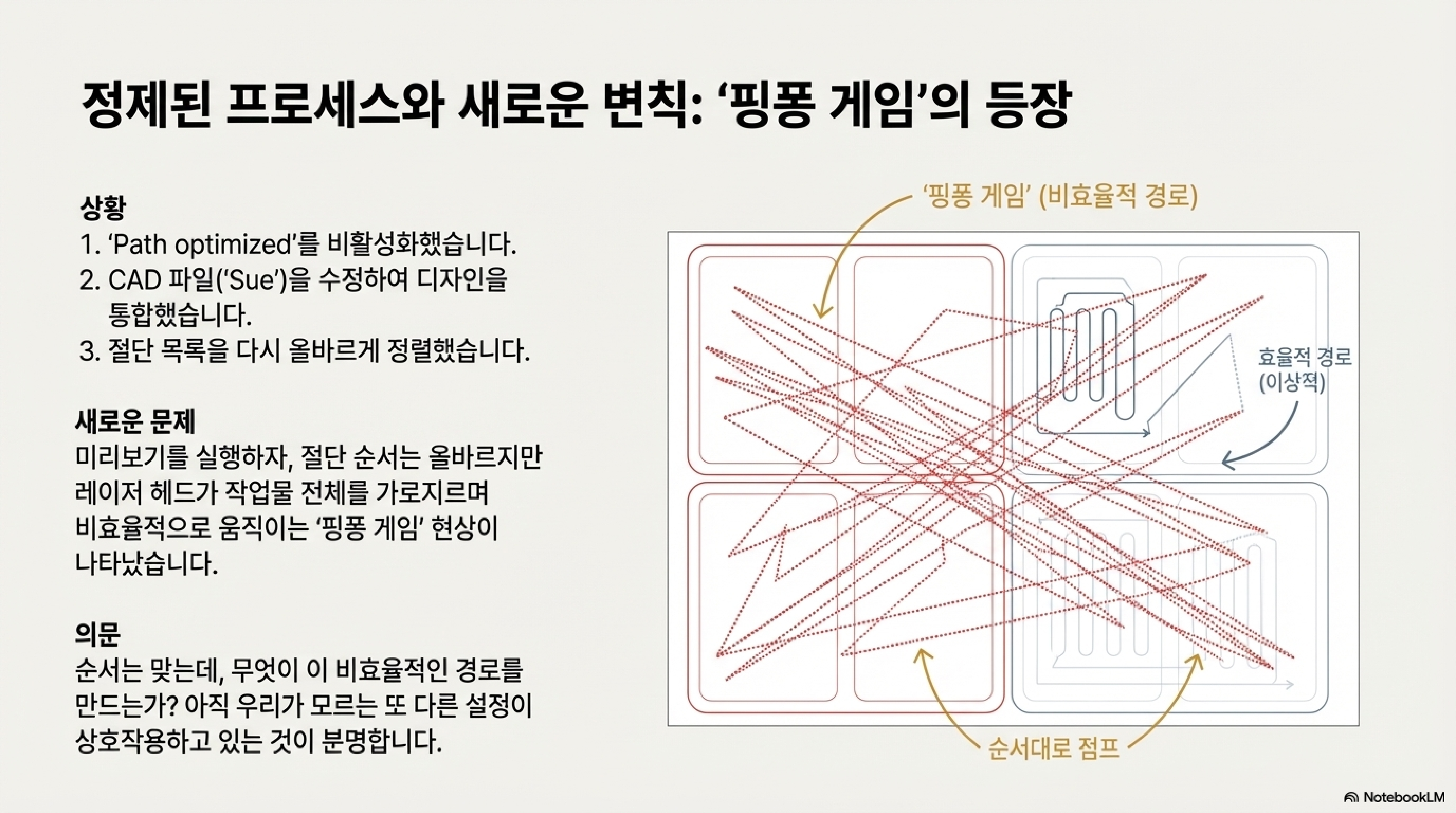 자신 있게 순서를 재정렬하고 미리보기를 실행했지만, 화면에는 절망스럽게도 기계가 다시 한번 정신없는 '핑퐁 게임'을 시작하는 모습이 보였습니다. 제 마음은 가라앉았습니다. 첫 번째 문제를 해결한 것만으로는 충분하지 않았던 겁니다.