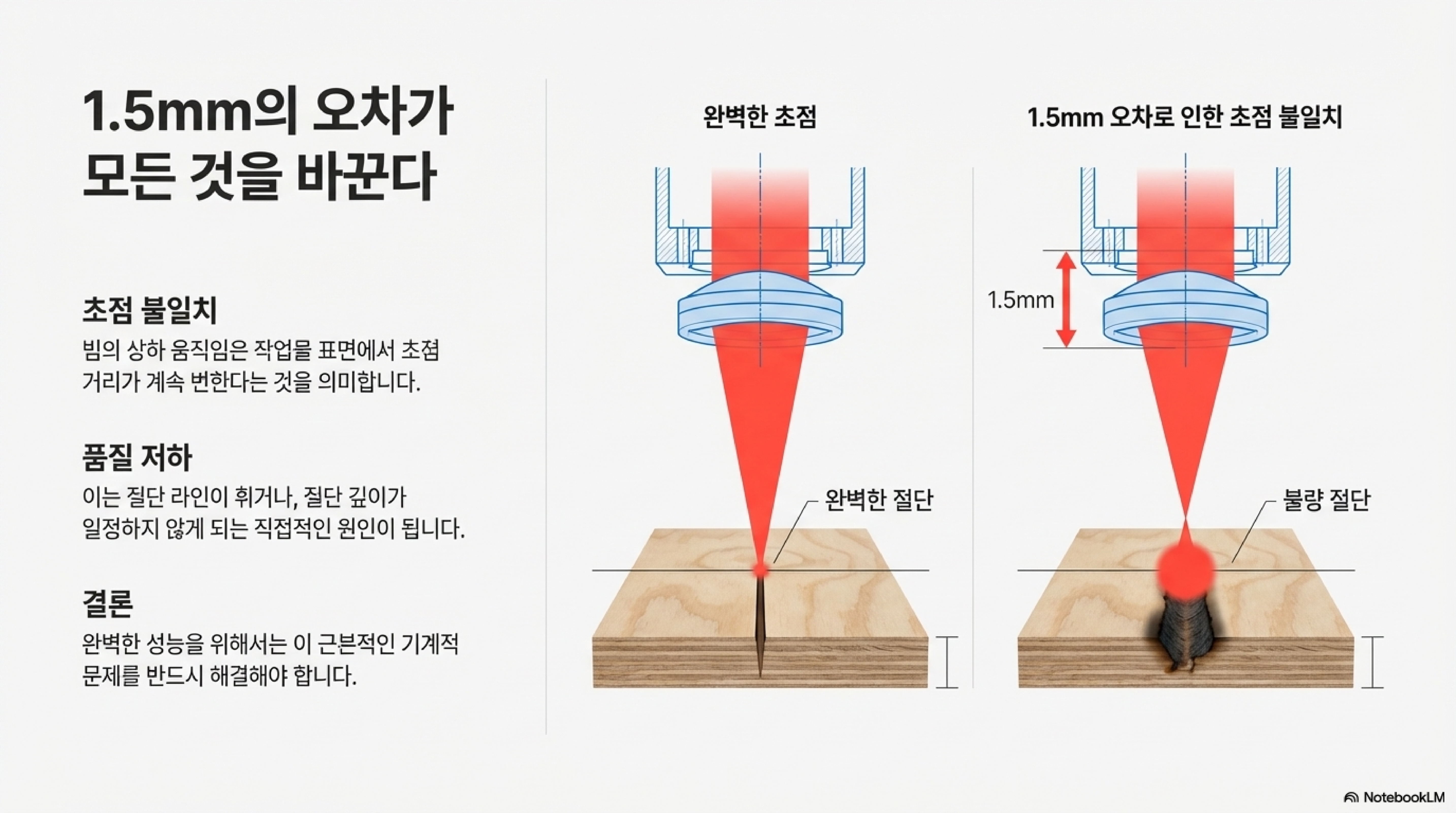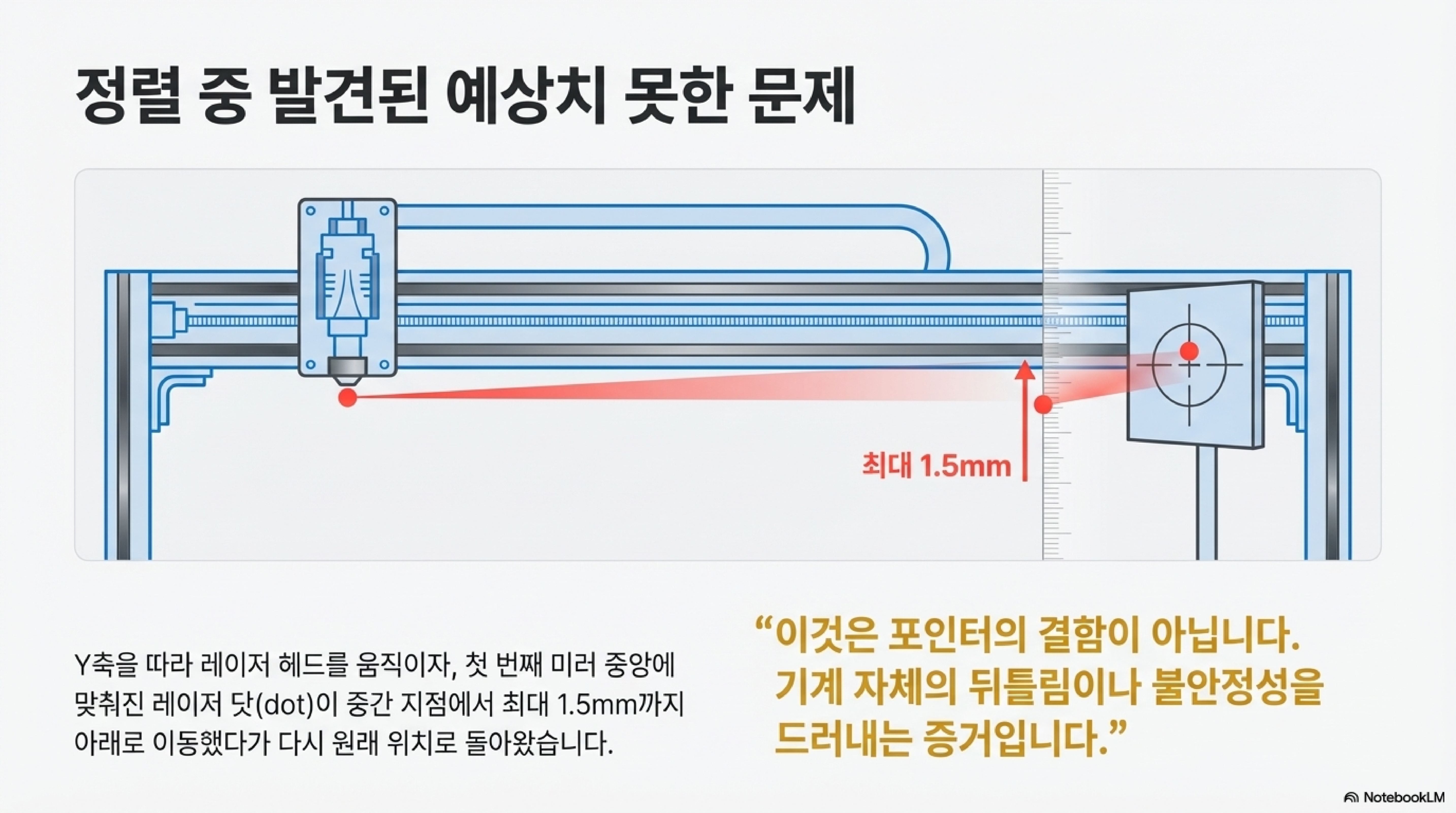 이것은 단순한 측정 오류가 아니었습니다. 기계 프레임이나 미러 마운트 자체에 물리적인 왜곡이 존재한다는 명백한 증거였죠. 이 발견이 왜 치명적일까요? 제작자의 말처럼, 만약 이 축을 따라 완벽한 직선을 자르려 했다면 "그것은 직선이 아니었을 겁니다." 가운데가 1mm 이상 움푹 파인 미세한 곡선이 되었을 거란 뜻입니다. 이런 진단 도구가 없었다면, 우리는 영원히 소프트웨어 설정만 탓하며 근본 원인을 찾지 못했을 겁니다.