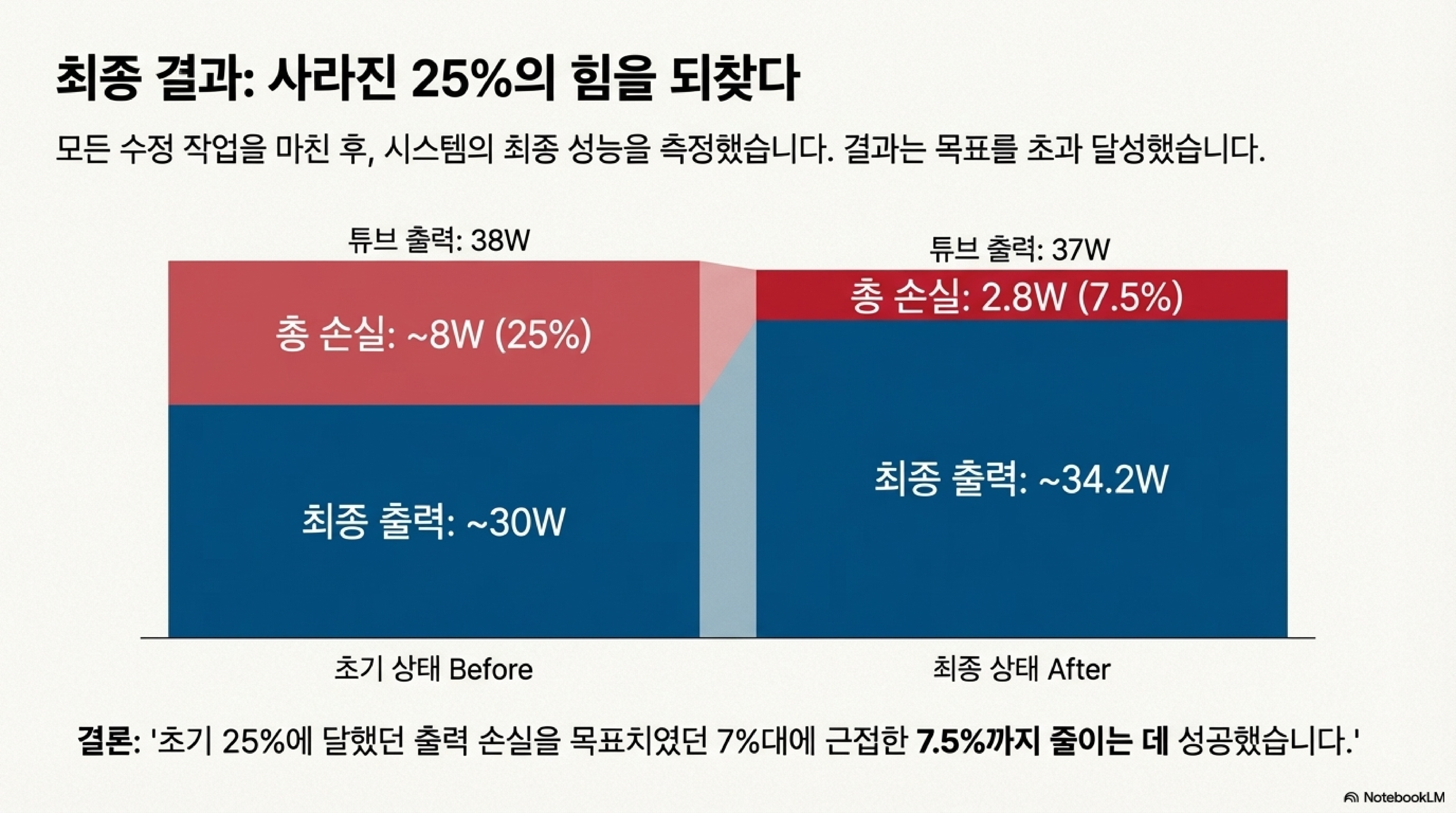 파워 미터가 없었다면 25%의 출력 손실이 발생하고 있다는 사실조차 인지하지 못했을 것입니다. 헤드의 정렬 불량이라는 근본 원인을 찾아내는 것은 불가능했을 것이며, DIY 거울과 HQ 렌즈가 실제로 성능을 얼마나 향상시켰는지 수치로 검증할 수도 없었을 것입니다. 추측이 아닌 데이터에 기반한 접근이 문제 해결의 핵심이었던 셈입니다.