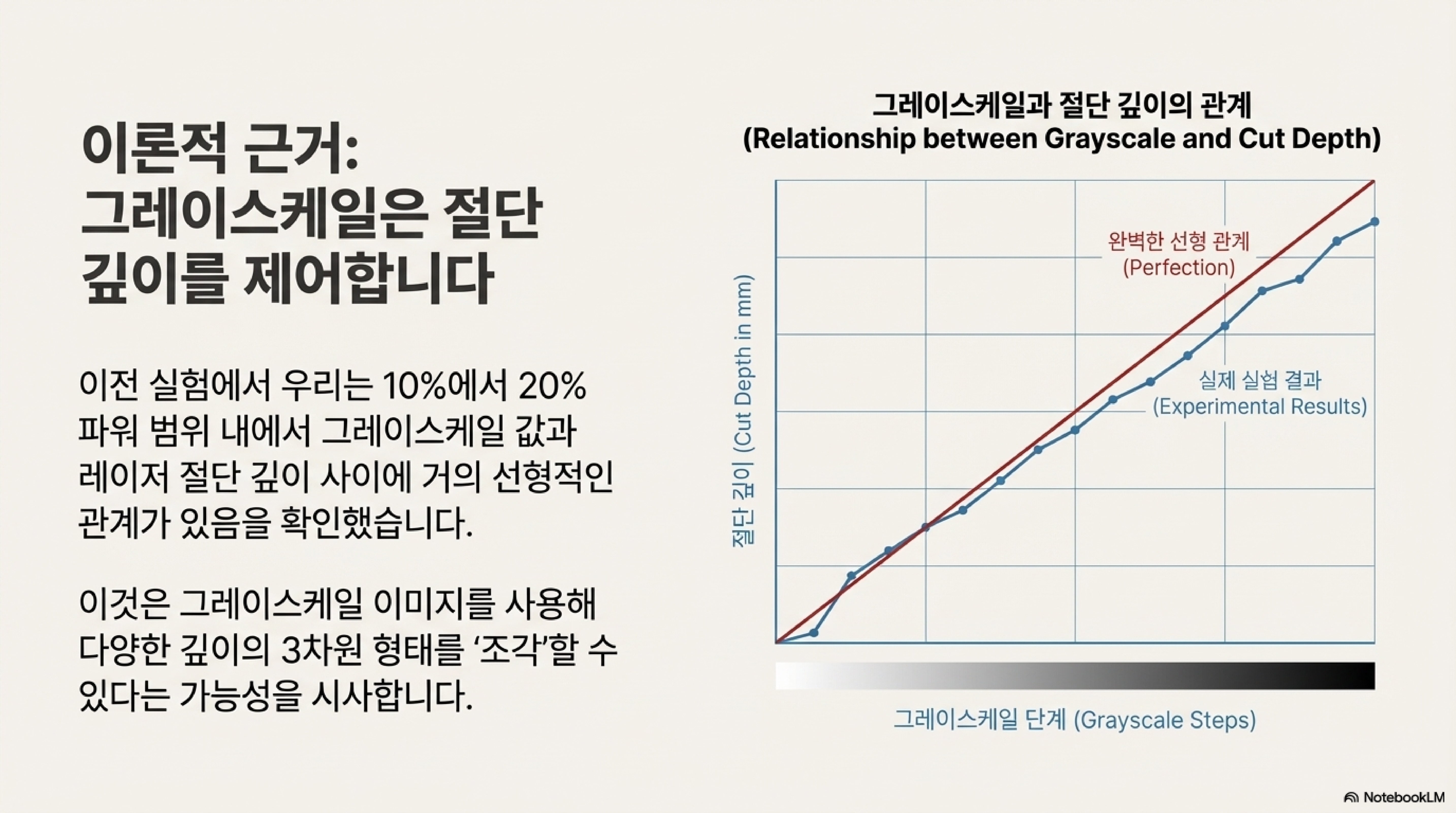 하지만 회색 음영의 농도에 따라 조각 깊이가 달라지는 것을 실험으로 확인하고 난 후, 저는 큰 깨달음을 얻었습니다. 이 문구는 번역 실수가 아니라, 기계의 핵심 기능을 문자 그대로 설명한 것이었습니다. 즉, 이 기계는 처음부터 회색 음영을 이용한 깊이 조절 기능을 염두에 두고 설계되었던 것입니다.