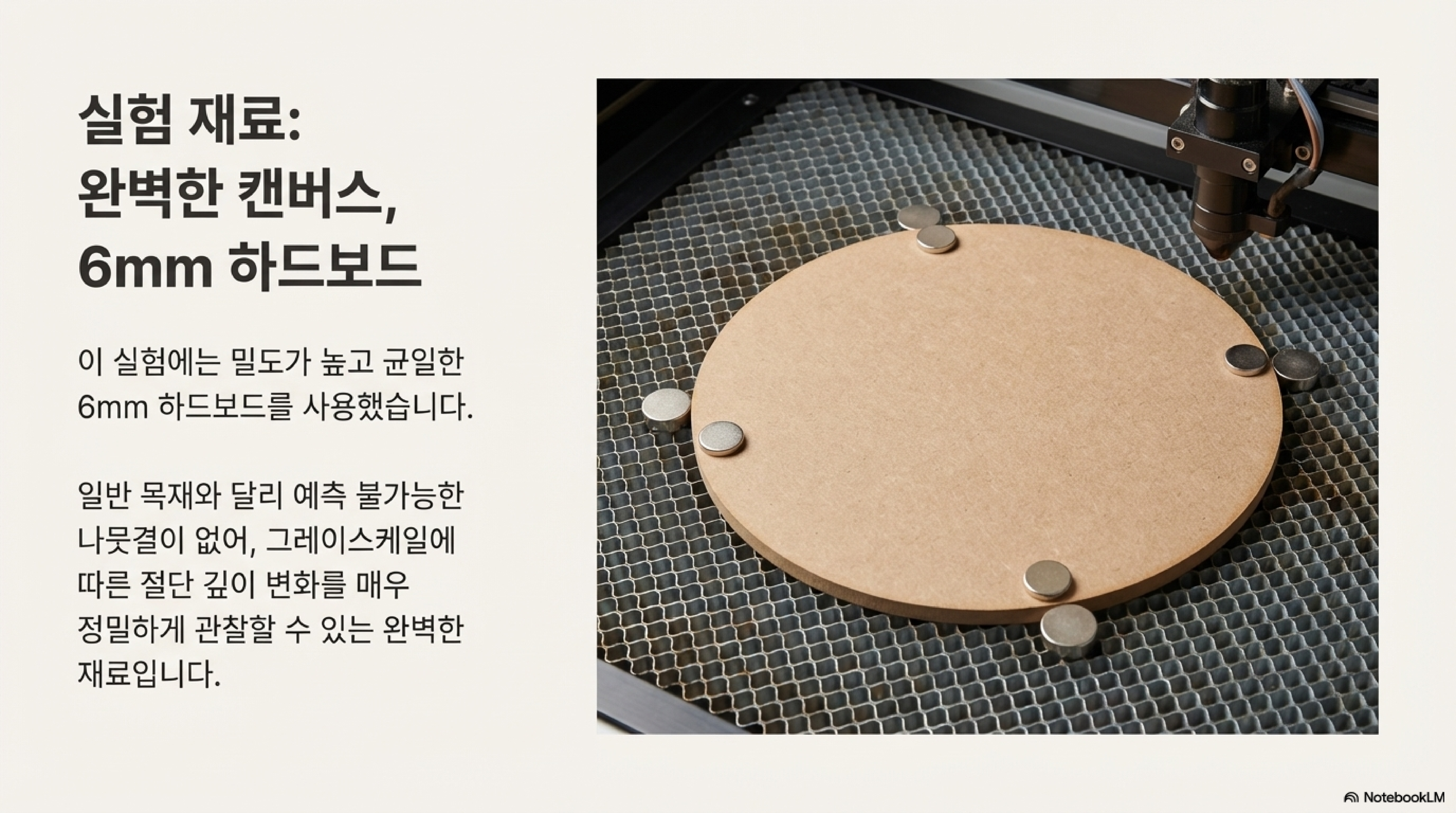 이 질문에 대한 답을 찾기 위해, 저는 6mm 두께의 매우 균일하고 밀도 높은 하드보드(hardboard)를 재료 삼아 직접 실험에 나섰습니다. 단순한 사진 한 장으로 시작된 이 여정에서 발견한 놀라운 진실들을 지금부터 공유하고자 합니다.