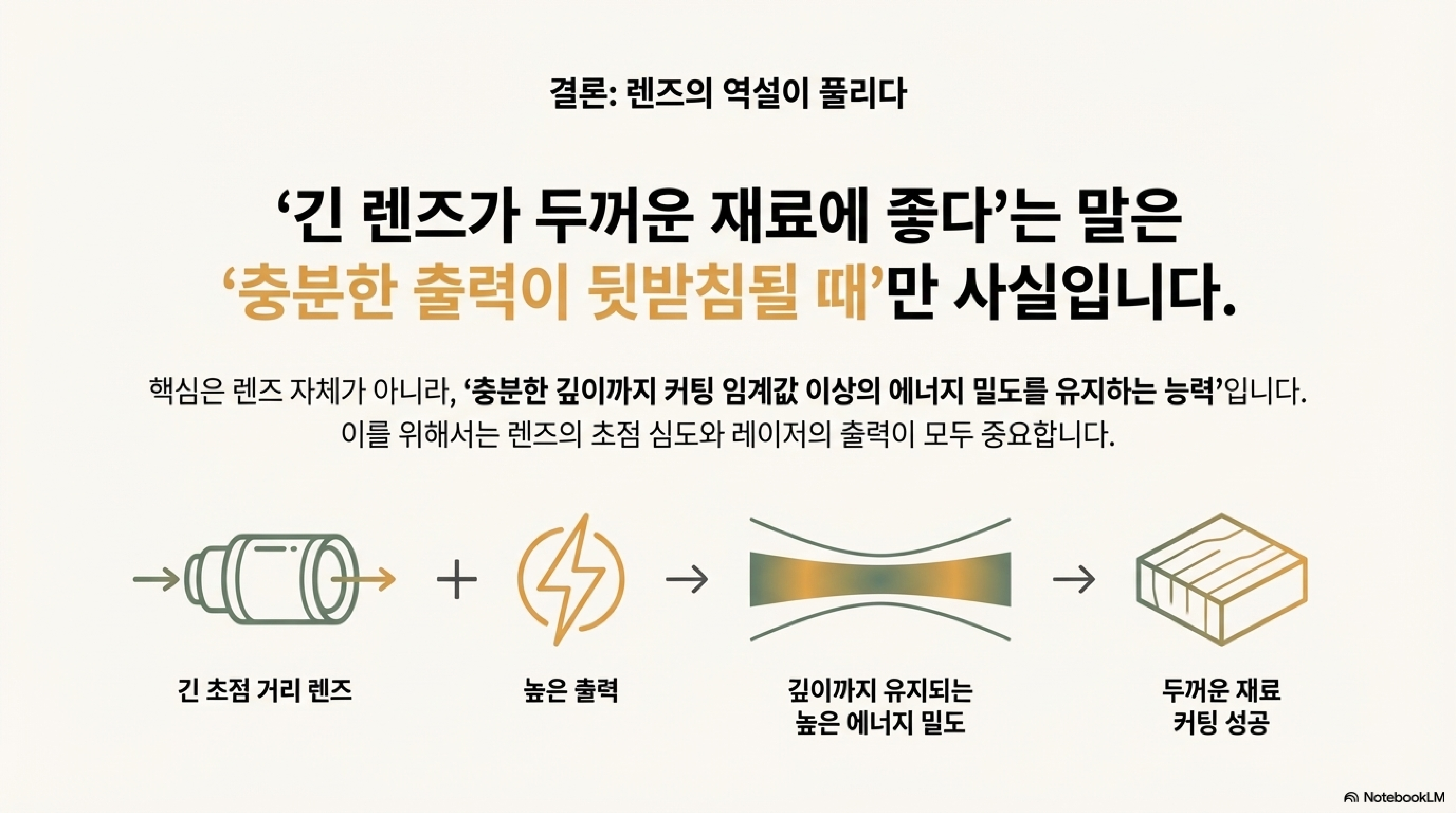 3. '두꺼운 재료엔 긴 초점 렌즈'라는 법칙에는 조건이 붙습니다.