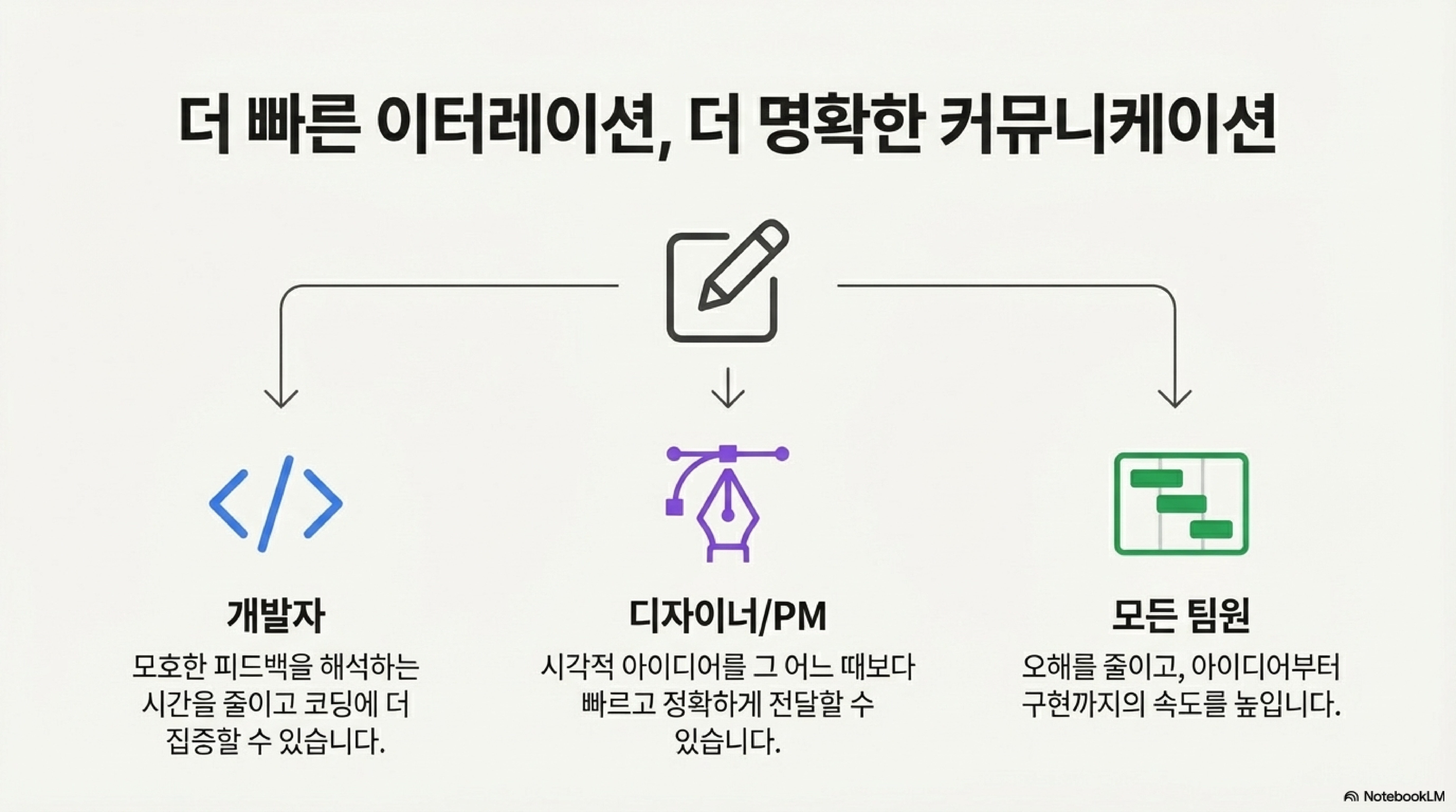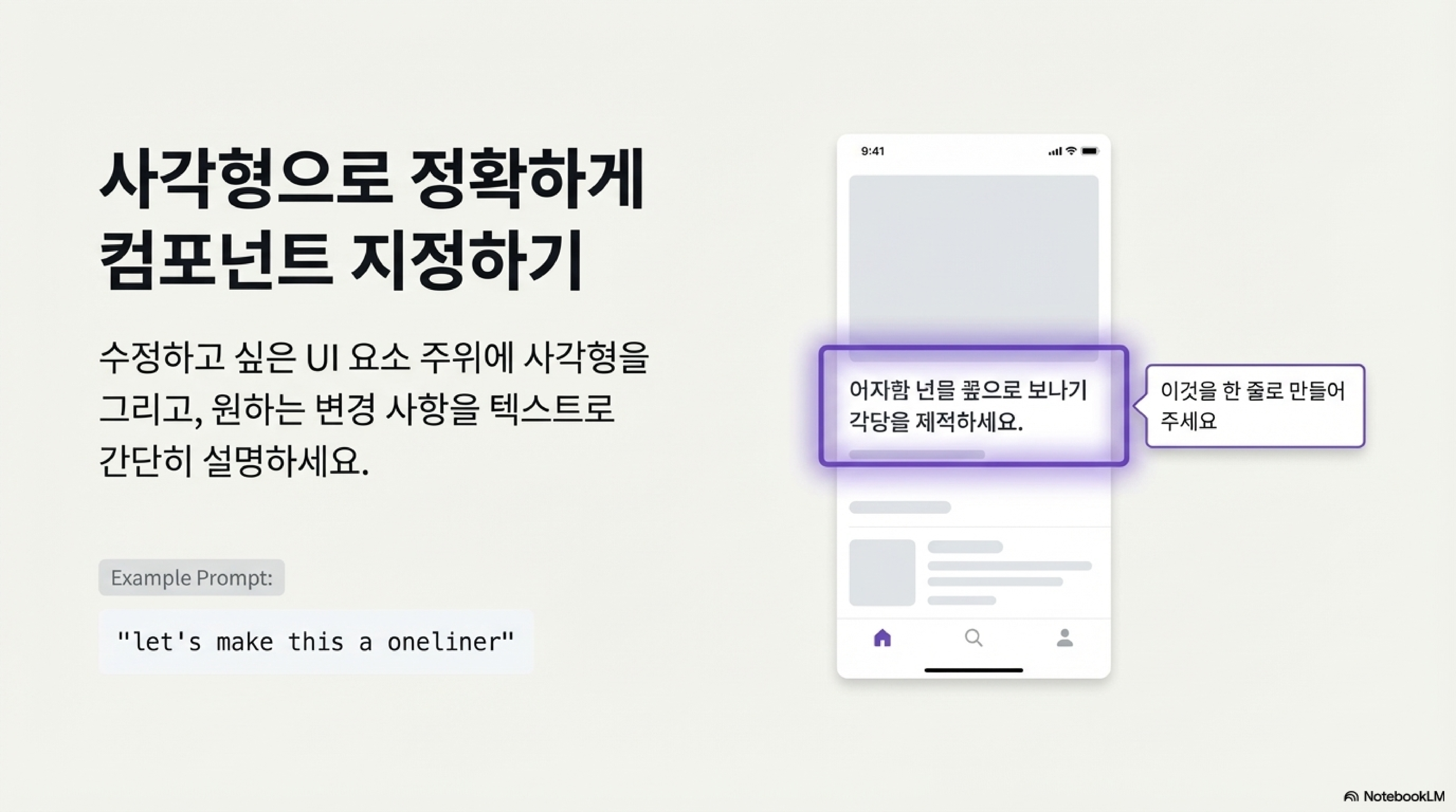 "버튼을 조금만 왼쪽으로 옮겨주세요," "저 텍스트를 한 줄로 만들어주세요." 디자인 피드백 루프나 개발자 핸드오프 과정에서 이런 텍스트 기반의 지시는 종종 오해를 불러일으키곤 합니다. 말하는 사람의 의도와 듣는 사람의 해석이 달라 결과물이 어긋나는 경험, 많은 분들이 겪어보셨을 겁니다.