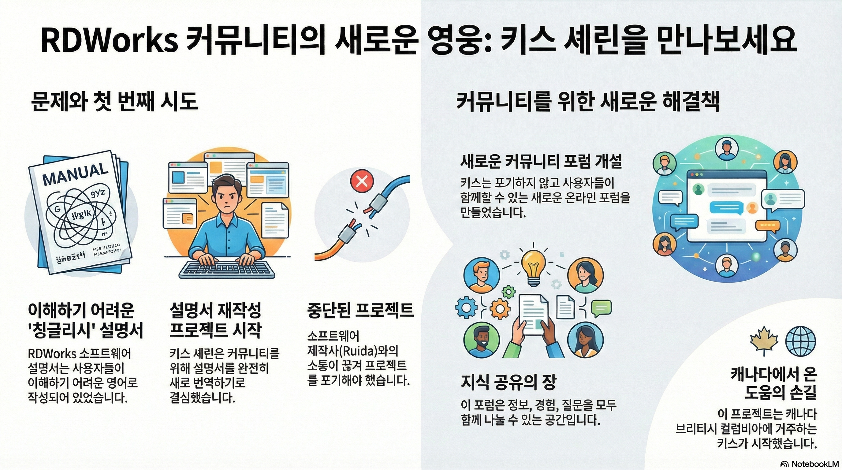 기업이 외면한 문제를 커뮤니티의 힘으로 풀어낸 키스처럼, 우리 주변의 '불편한 매뉴얼'을 '살아있는 지식의 광장'으로 바꿀 방법은 무엇일까요?