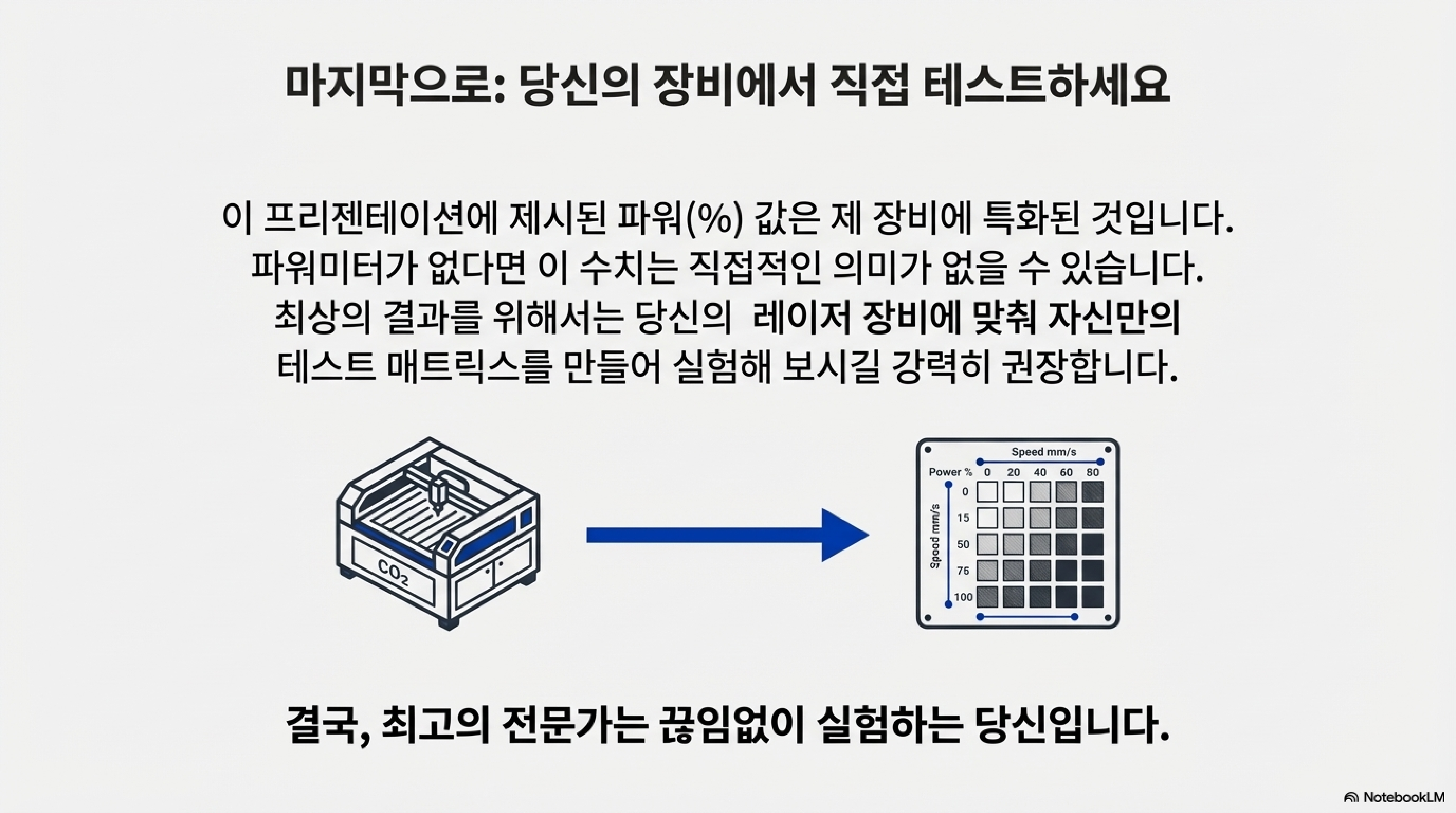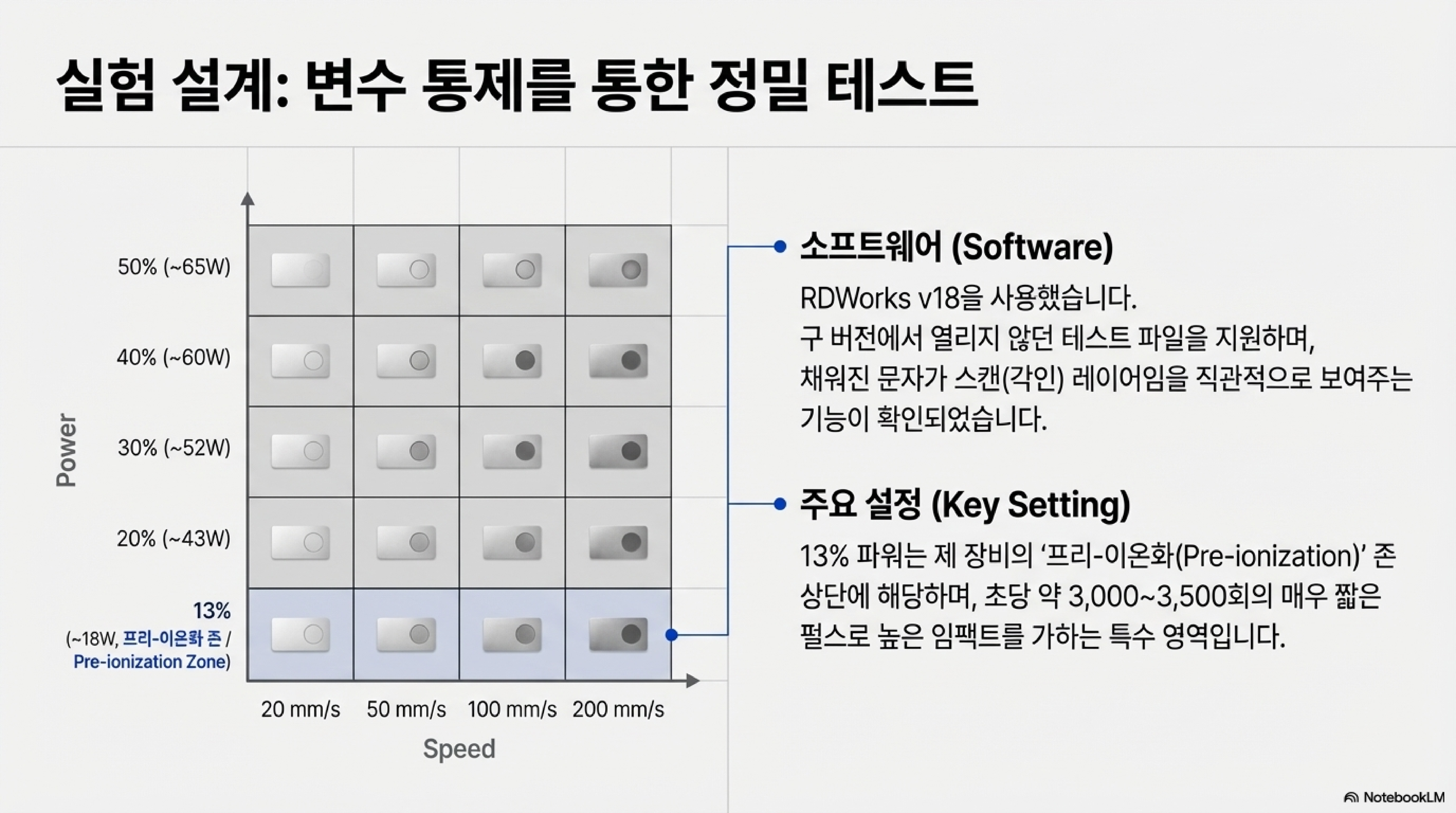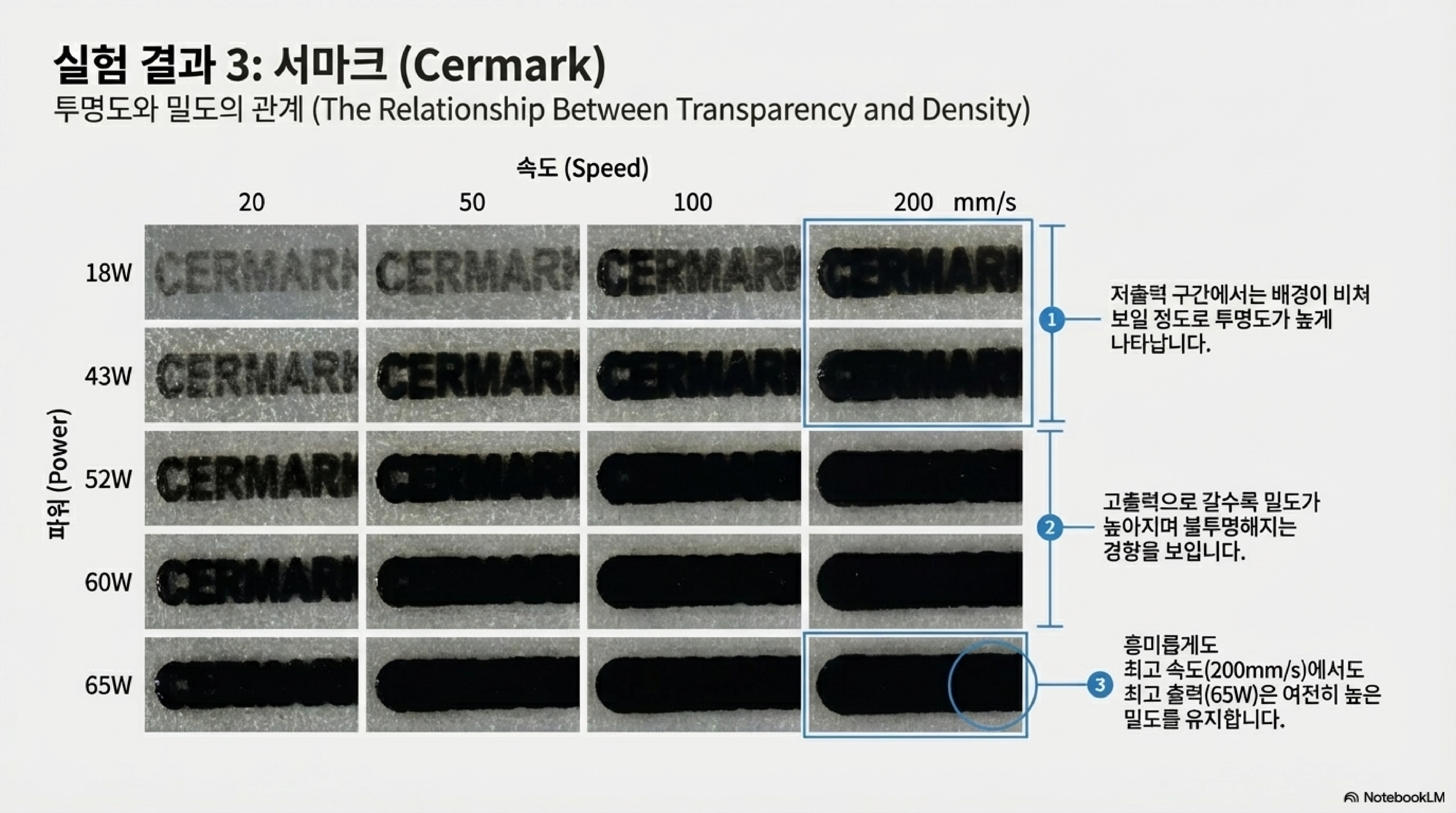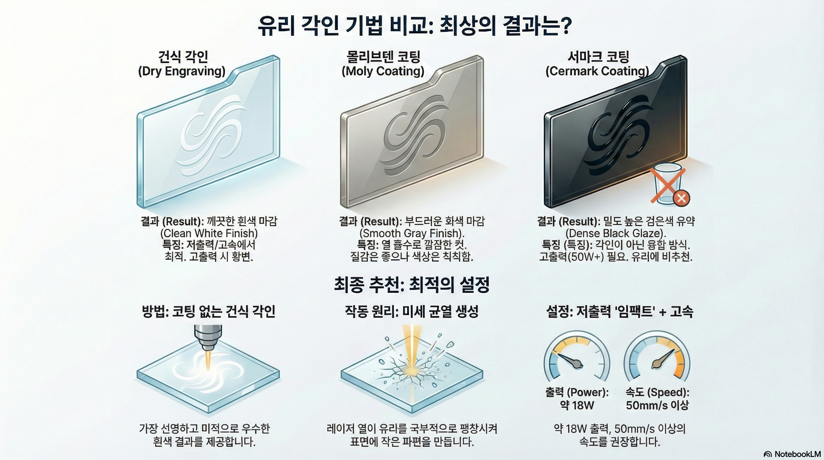단순히 출력을 높이는 것이 능사가 아니라는 점이 이번 실험의 가장 중요한 발견 중 하나였습니다. 에너지를 유리에 어떻게 전달하는지가 결과물의 품질을 결정하는 핵심 요소였습니다.
