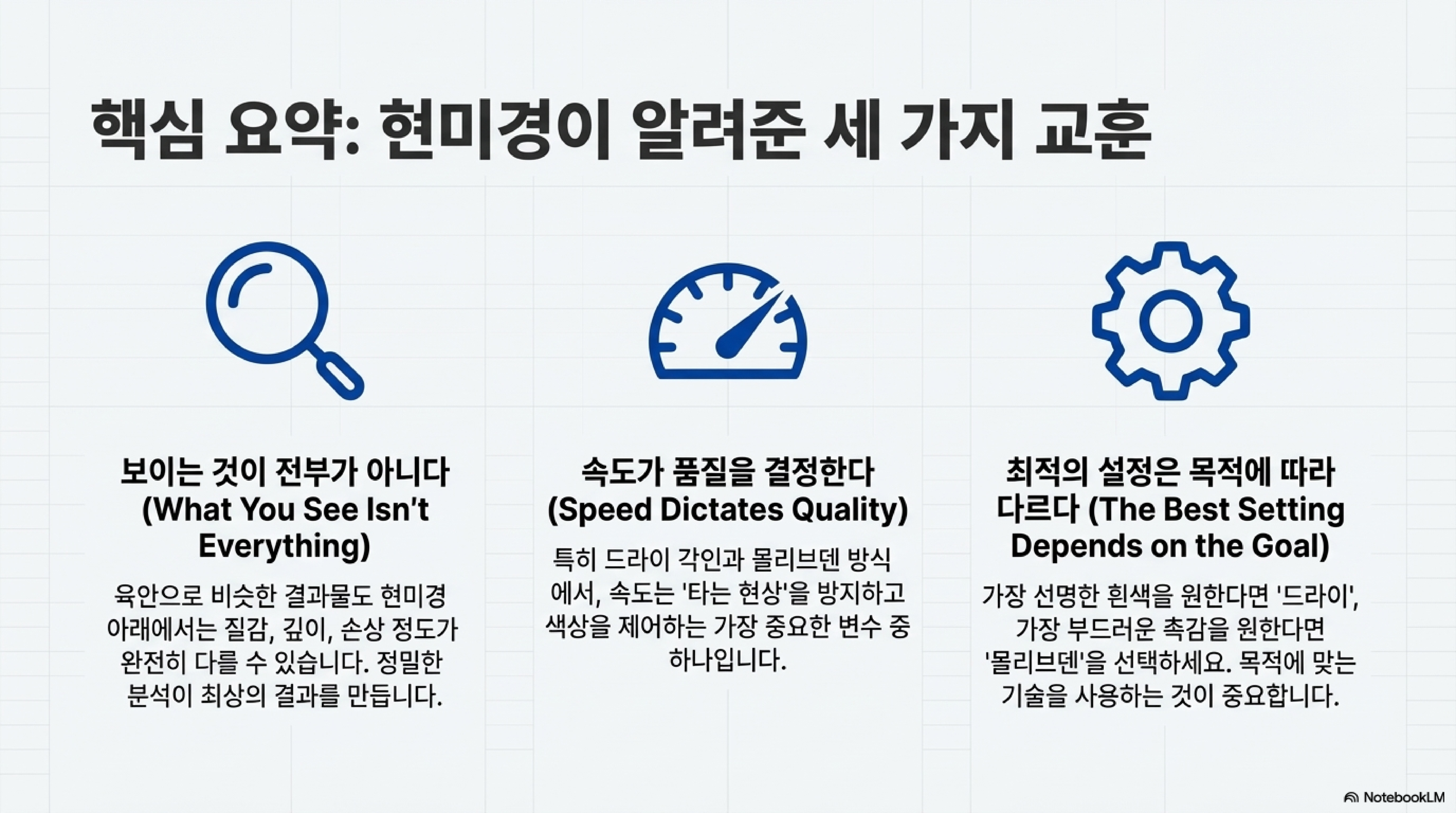 이 글을 읽는 여러분께 질문을 던지며 마무리하고 싶습니다. 당신의 작업 과정에서 오랫동안 당연하게 여겨온 것들 중, 다시 한번 자세히 들여다볼 가치가 있는 것은 무엇인가요? 현미경을 들여다보듯 새로운 관점으로 접근할 때, 당신의 작업물은 한 단계 더 발전할 수 있을 것입니다.