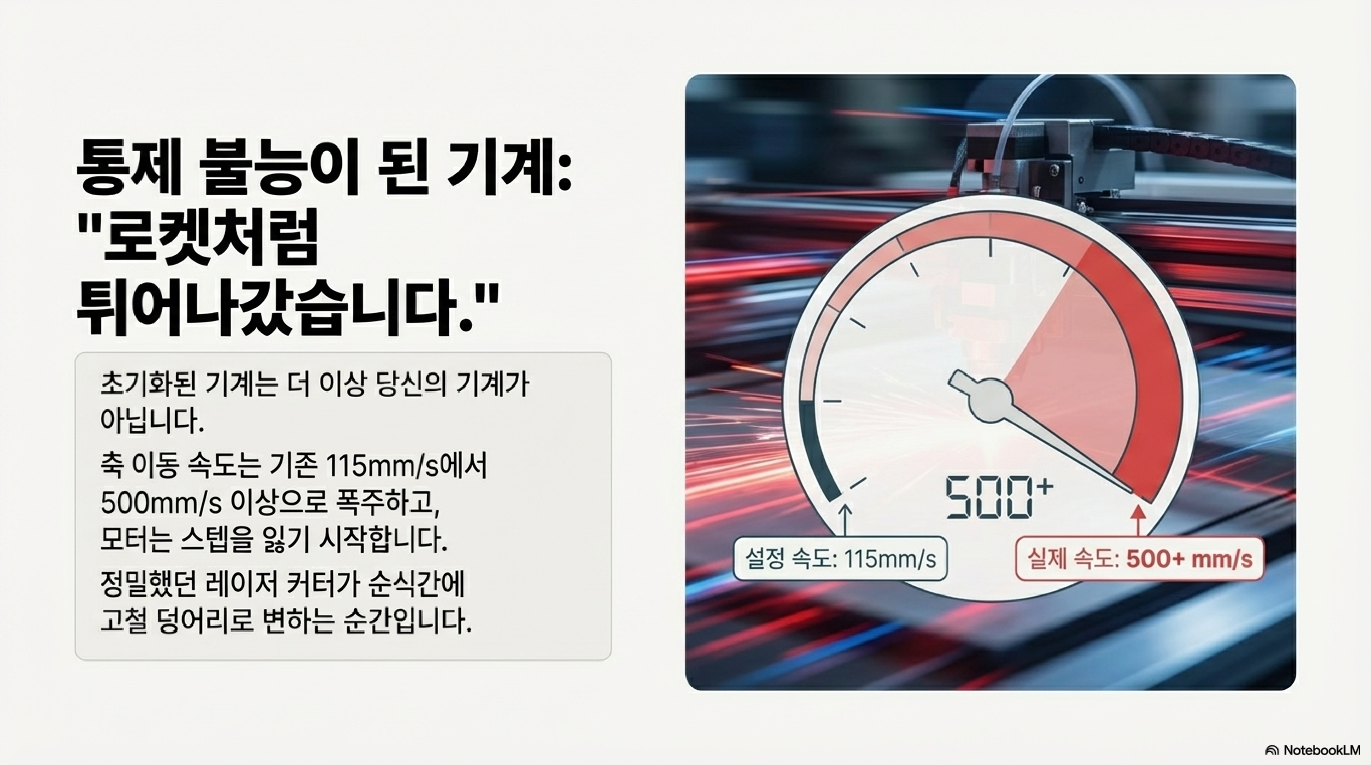 115mm/s로 부드럽게 움직이도록 설정된 축이 갑자기 500mm/s가 넘는 속도로 베드를 가로지르며 기계를 격렬하게 흔들고 스텝을 놓치기 시작했습니다. 이 절망적인 상황에서 제가 기계를 되살릴 수 있었던 유일한 이유는 바로 1년 전에 미리 저장해 둔 두 개의 파일 덕분이었습니다. 바로 '사용자(user)' 파라미터와 '공급업체(vendor)' 파라미터 백업 파일입니다.