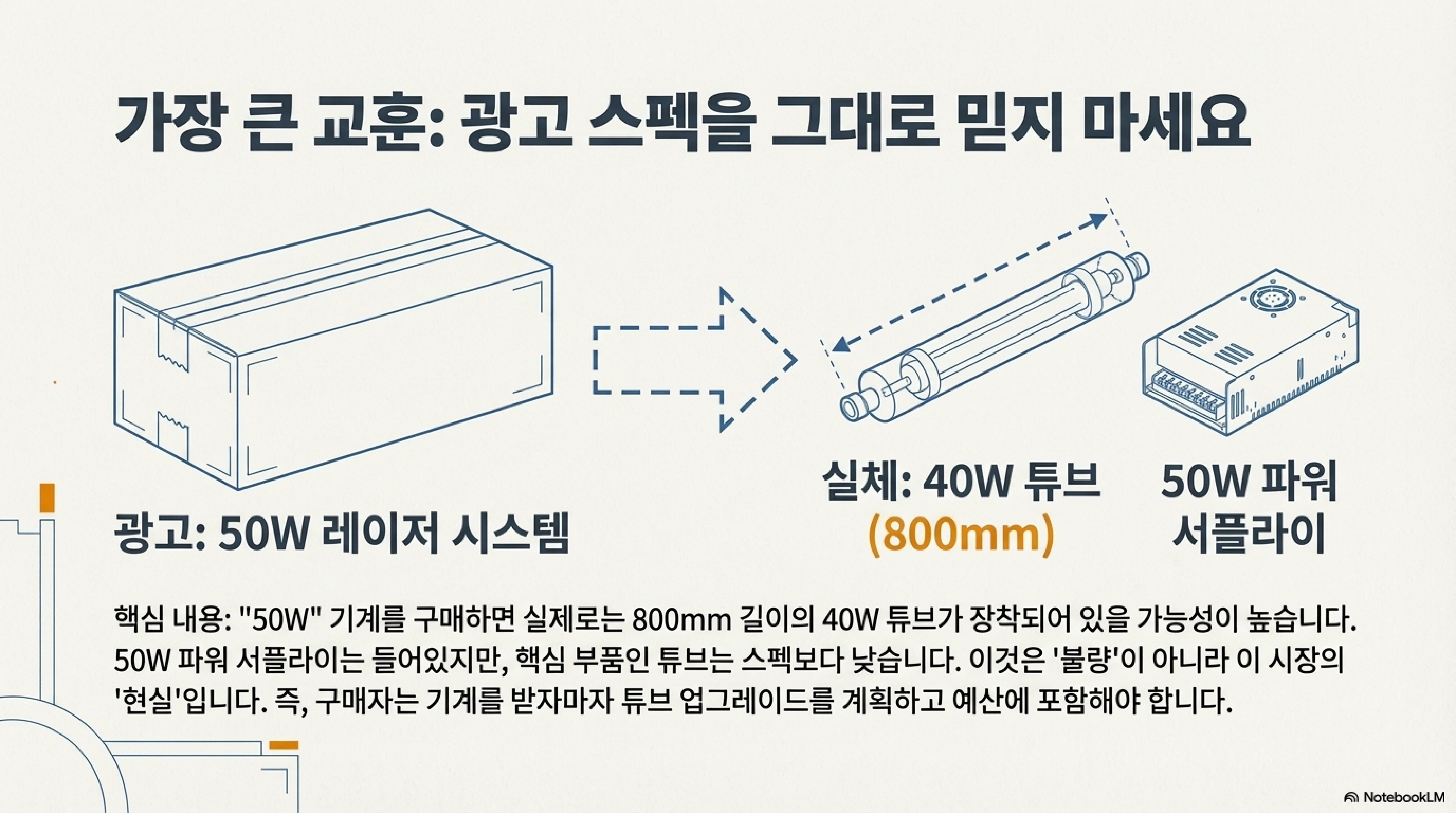 1. '50W 레이저'는 진짜 50W가 아니다: 스펙의 함정