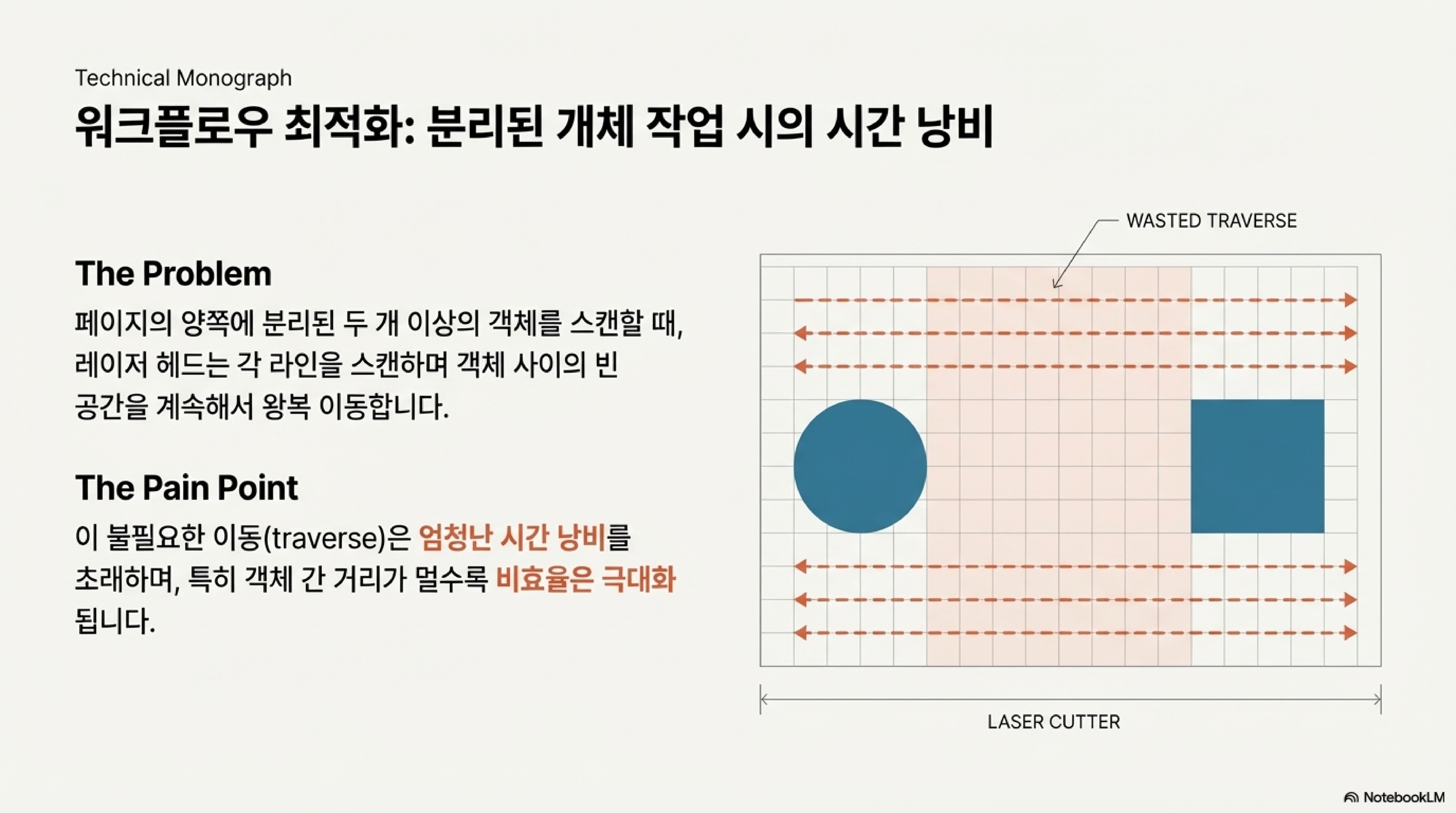 하지만 이 기능에는 치명적인 역설이 숨어있었습니다. 빈 공간을 스캔하지 않아 시간을 절약하도록 설계된 이 기능이, 특정 상황에서는 오히려 작업 시간을 터무니없이 늘릴 수 있다는 점입니다. 텍스트 덩어리에 이 기능을 적용하자, 소프트웨어는 텍스트 전체를 하나의 객체로 인식하는 것이 아니라 '각 글자'를 개별 객체로 인식했습니다. 그 결과, 한 글자씩 따로 스캔하고 가감속을 반복하느라 엄청난 오버헤드가 발생했습니다. 심지어 텍스트를 그룹으로 묶어도 이 문제는 해결되지 않았습니다.