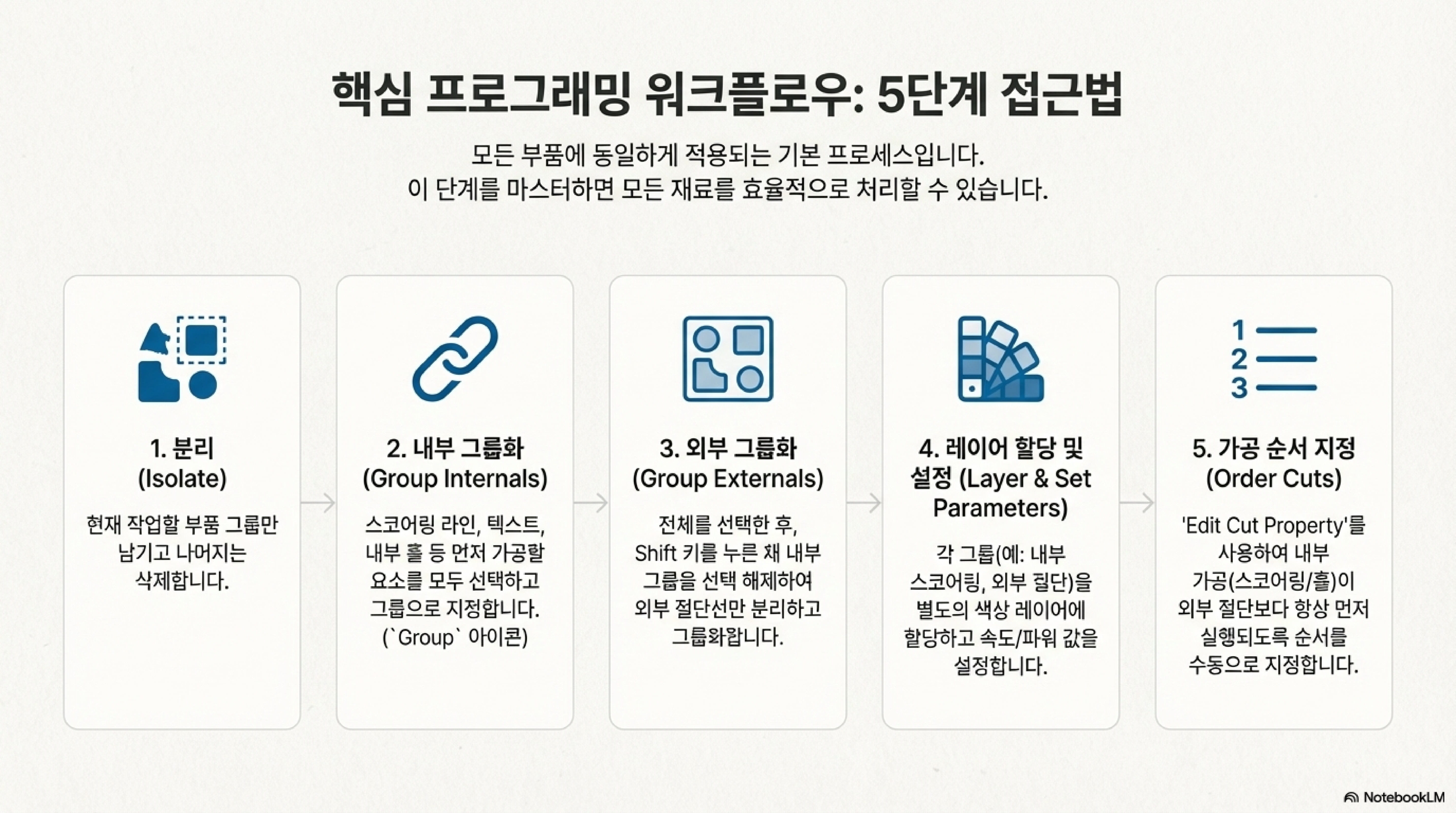 레이저 커터로 여러 재료를 사용하거나 복잡한 부품을 조립하는 작업을 해보셨나요? 각기 다른 설정이 필요한 부품마다 파일을 따로 관리하고 불러오는 과정은 생각보다 번거롭고 시간을 많이 잡아먹습니다. 하지만 숙련된 고수들은 이런 복잡한 작업도 간단하고 반복 가능한 프로세스로 만들어버리는 비법을 알고 있습니다.
