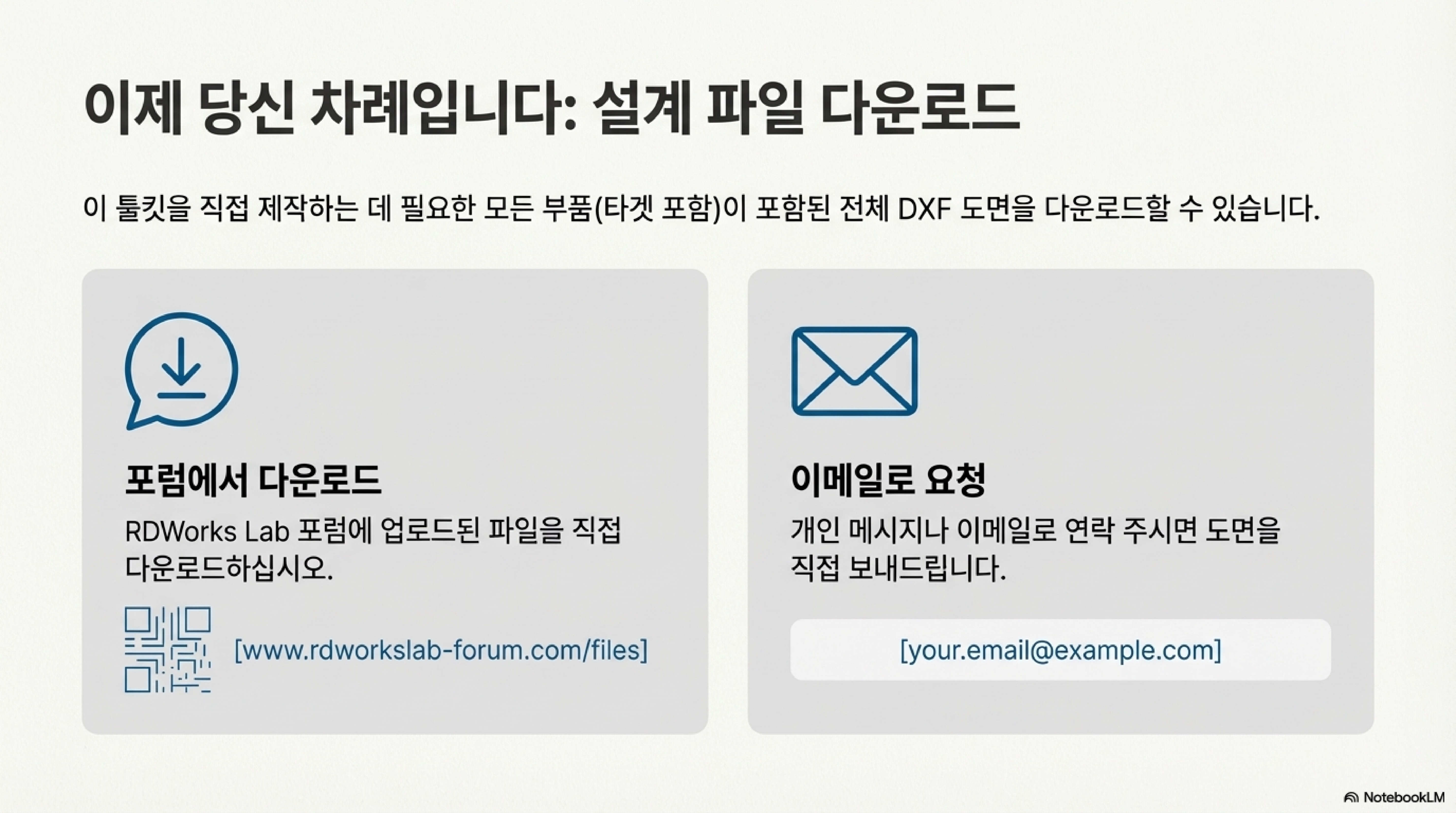 이 접근 방식의 가장 큰 장점은 바로 이 접근성입니다. 레이저 커터와 약간의 재료만 있다면 누구나 자신에게 꼭 맞는 정밀한 맞춤형 도구를 만들 수 있습니다. 저는 이 도면들을 Rd Works lab Forum에 업로드할 예정이며, 필요하신 분은 포럼에서 다운로드 받거나 제게 이메일 주소와 함께 메시지를 보내주시면 도면을 직접 보내드리겠습니다.