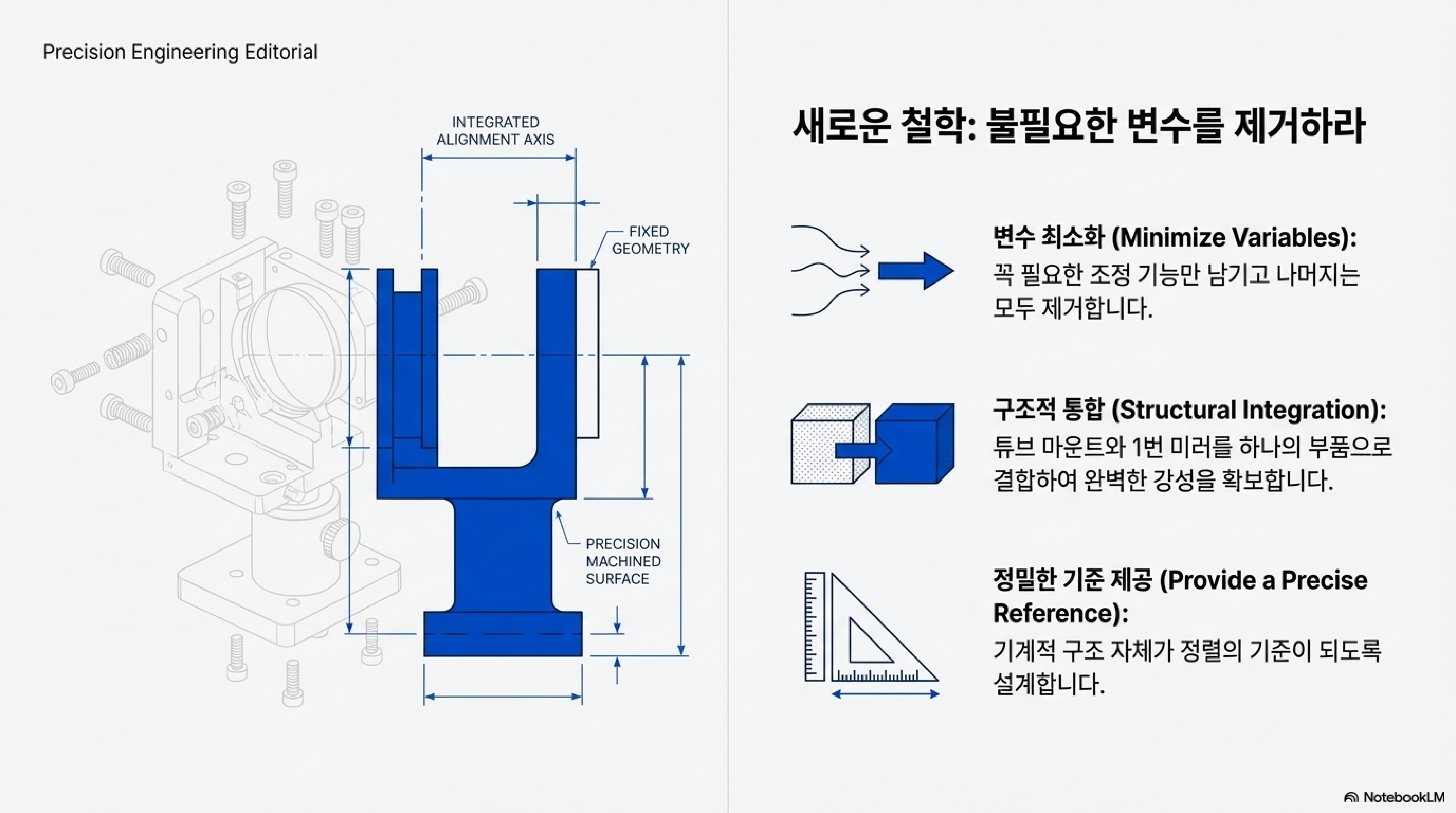 하지만 수년간의 경험 끝에 저는 깨달았습니다. 문제는 단순히 조정 나사를 돌리는 기술에 있지 않았습니다. 진짜 원인은 기계 자체의 더 근본적인 설계에 있었습니다. 저는 복잡함을 더 잘 다루는 방법을 터득하는 것이 아니라, 그 복잡함을 근본적으로 제거해야 한다는 것을 깨달았습니다. 그래서 저는 기존 시스템을 완전히 버리고 처음부터 다시 설계하기로 했습니다. 이 과정에서 얻은, 가장 충격적이고 반직관적이었던 교훈들을 여러분과 공유하고자 합니다.