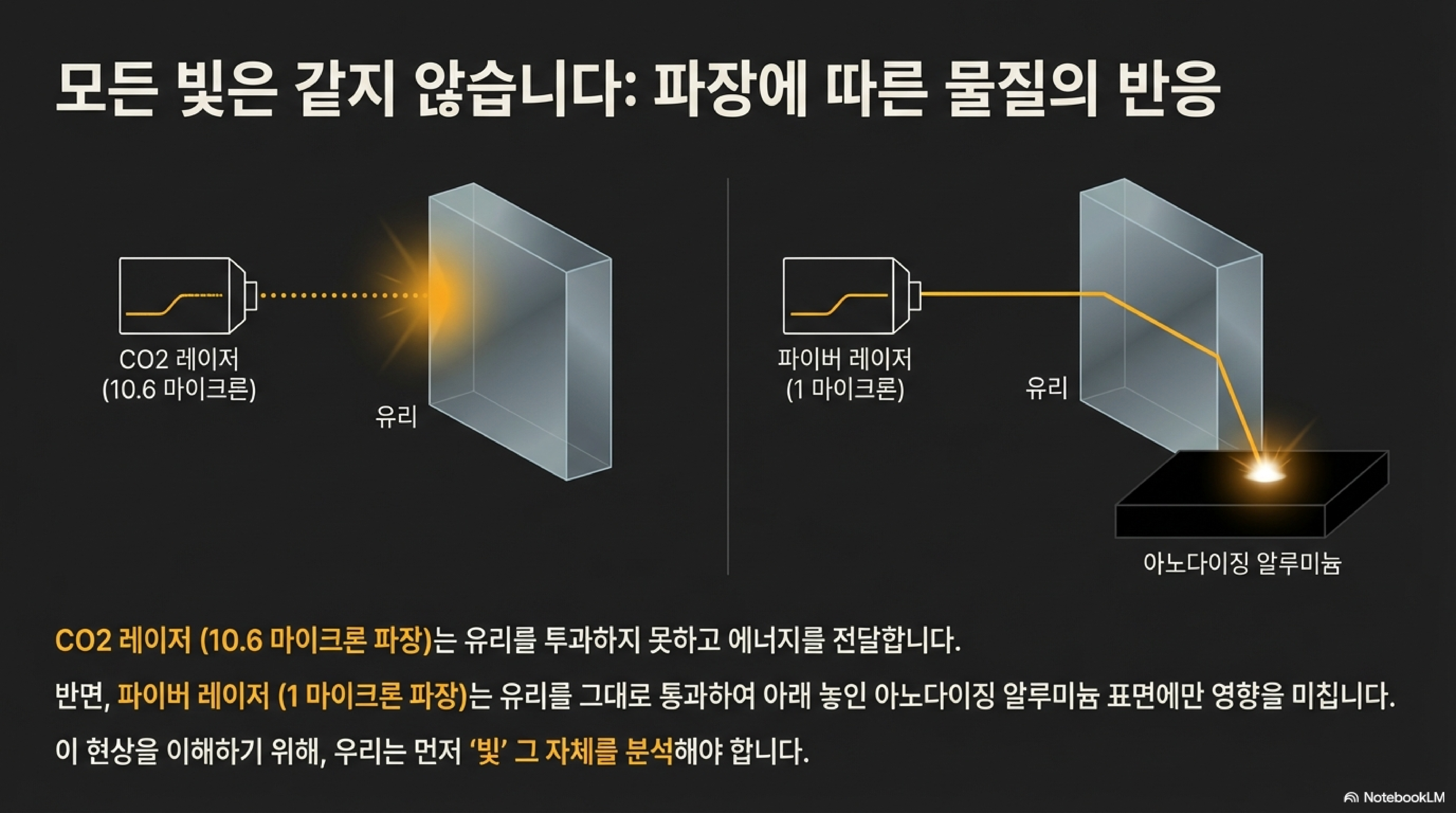 우리 눈에는 투명하게 보이는 물질이라도 레이저에게는 그렇지 않을 수 있습니다. 레이저와 물질의 상호작용은 전적으로 레이저의 '파장(wavelength)'에 따라 결정됩니다. 이는 두 가지 간단한 실험으로 명확히 확인할 수 있습니다.