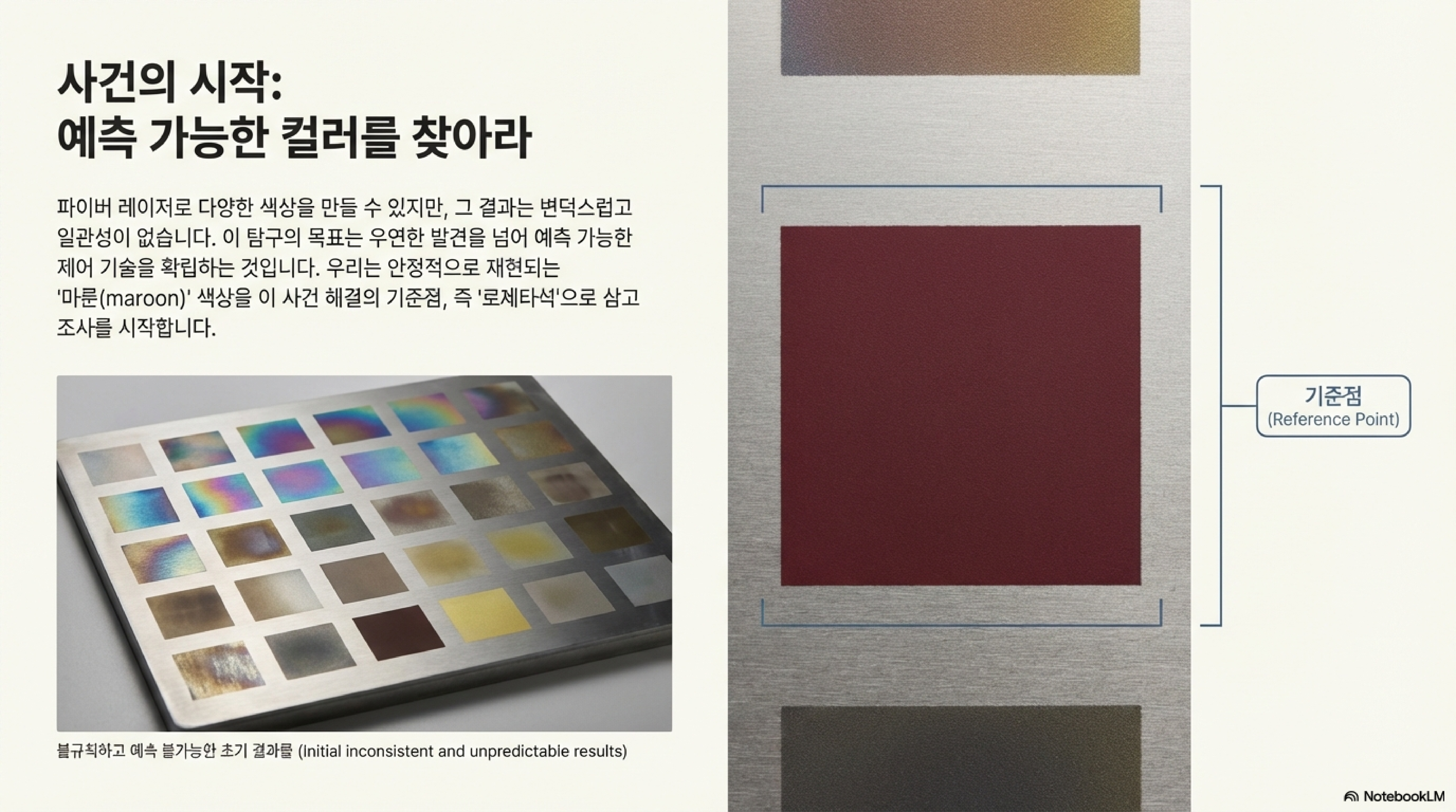 '색상을 만드는 예측 가능한 공식을 찾겠다'는 단순한 목표로 시작된 여정은 우리를 훨씬 더 깊은 곳으로 이끌었습니다. 우리는 단순히 레이저 파라미터를 조정하는 것을 넘어, 열역학, 표면 물리학, 그리고 인간의 시지각이 어떻게 상호작용하여 '색'이라는 현상을 만들어내는지를 이해하게 되었습니다.