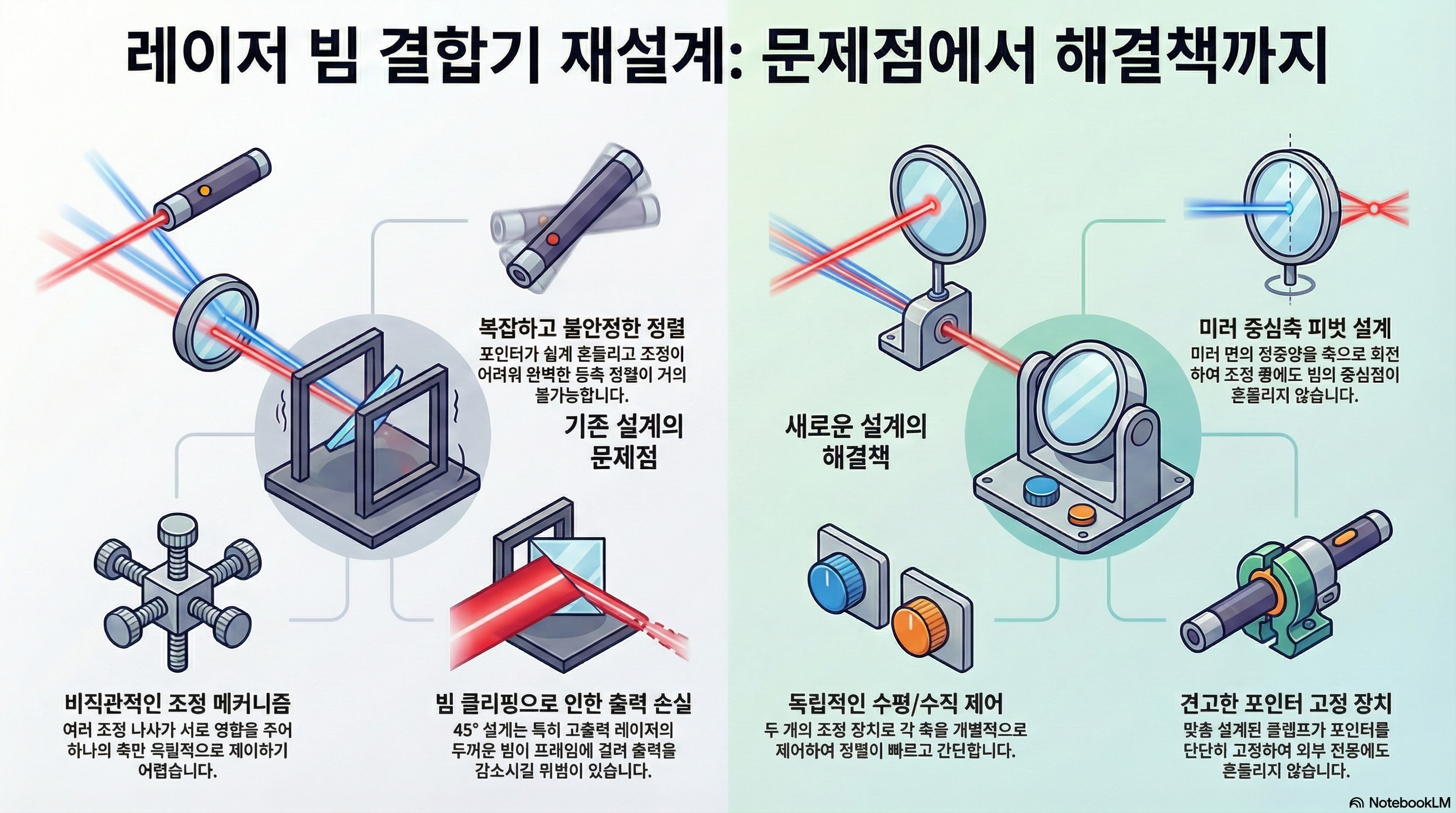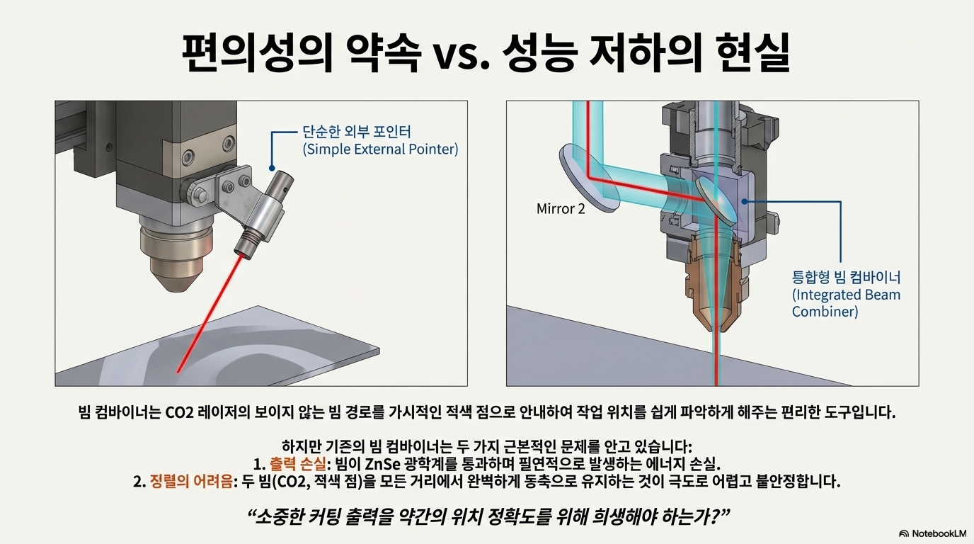 많은 사용자들이 느끼는 좌절감은 사실 도구 자체의 기계적 설계 결함에서 비롯됩니다. 일반적인 빔 컴바이너는 안정적인 조정을 거의 불가능하게 만드는 몇 가지 치명적인 문제를 안고 있습니다.