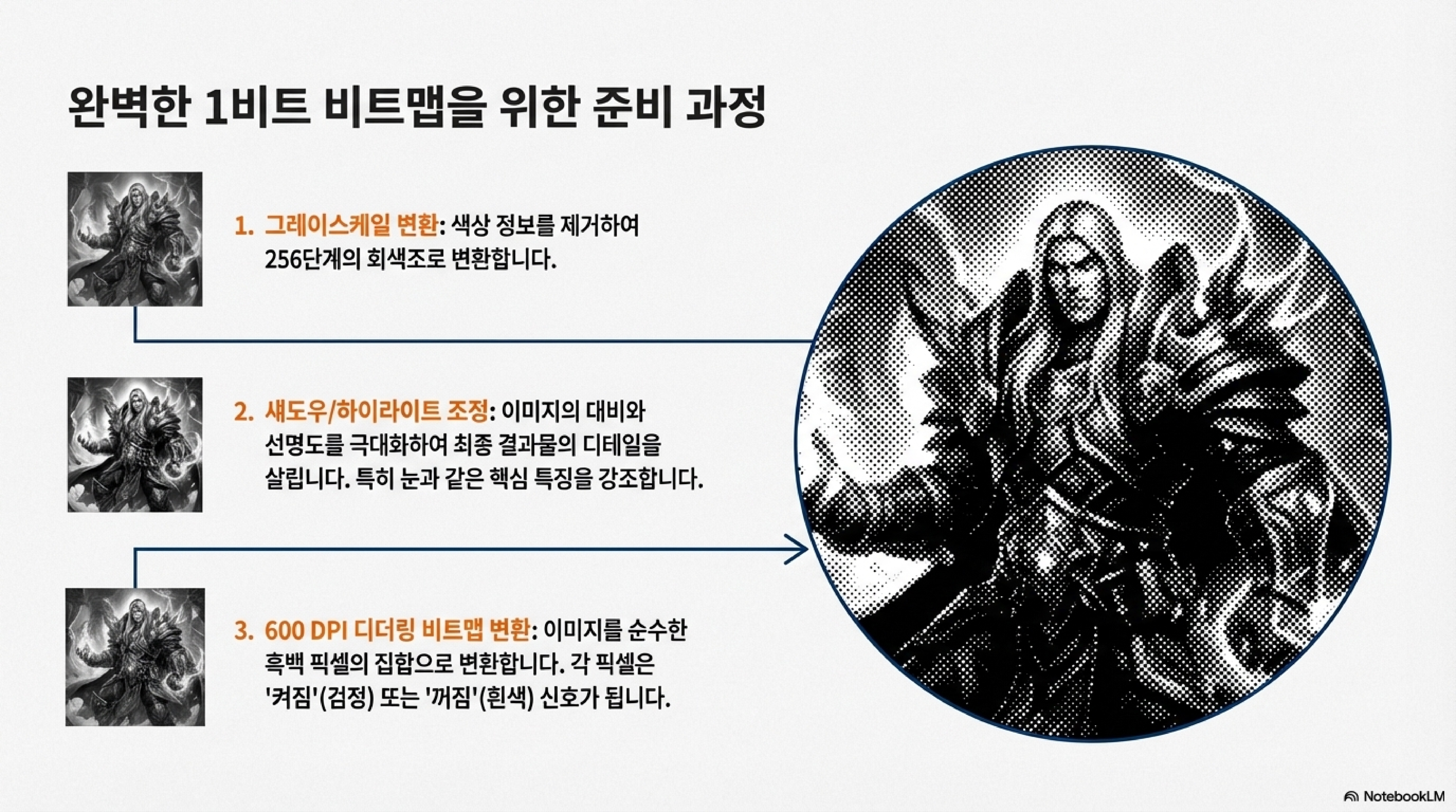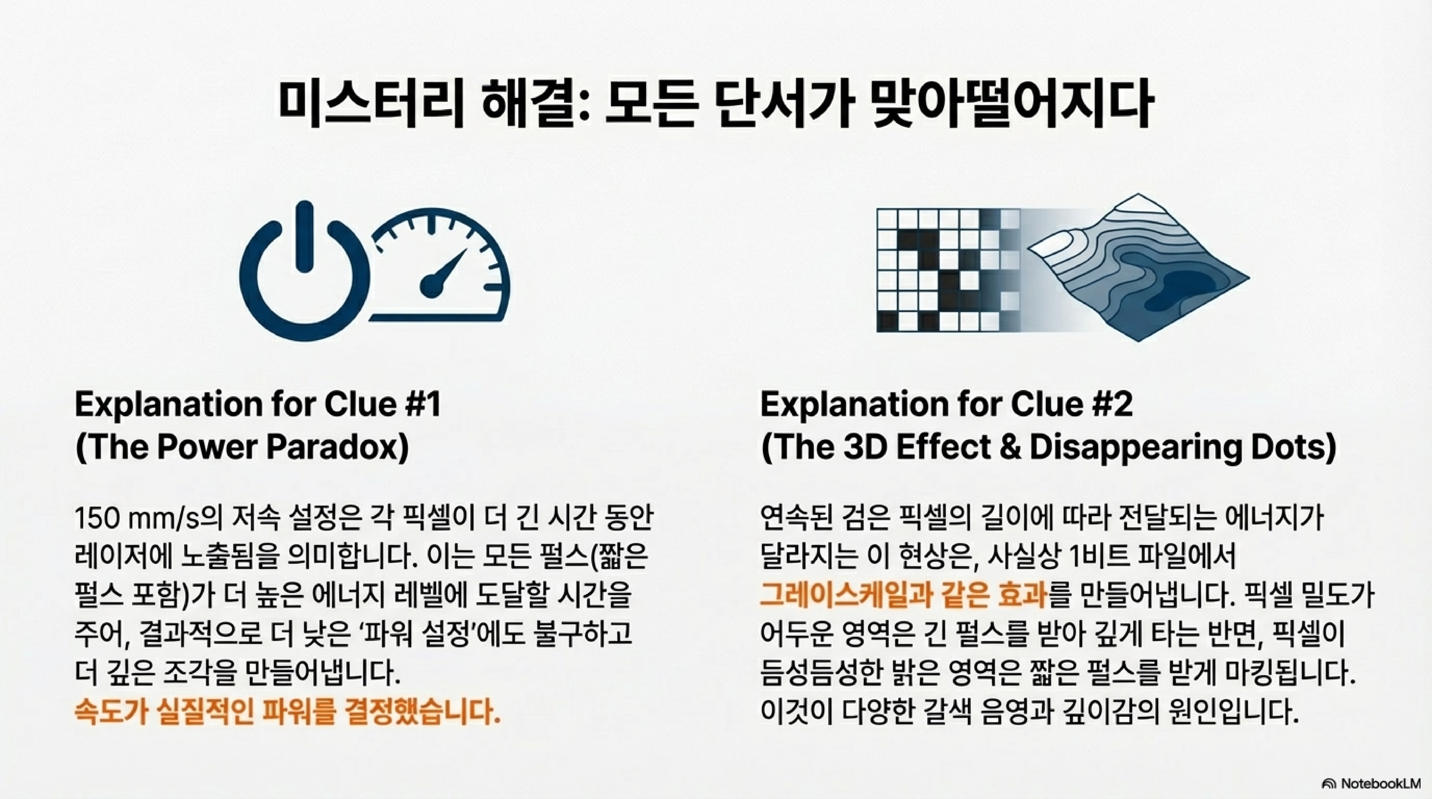 이것이 바로 흑백의 디지털 점들이 아날로그적인 그레이스케일을 만들어내는 비밀이었습니다. 검은 픽셀이 얼마나 길게 이어져 있느냐에 따라 레이저가 재료에 가하는 실제 에너지의 양이 달라졌던 것입니다. 이 깨달음은 모든 것을 설명해주었습니다.