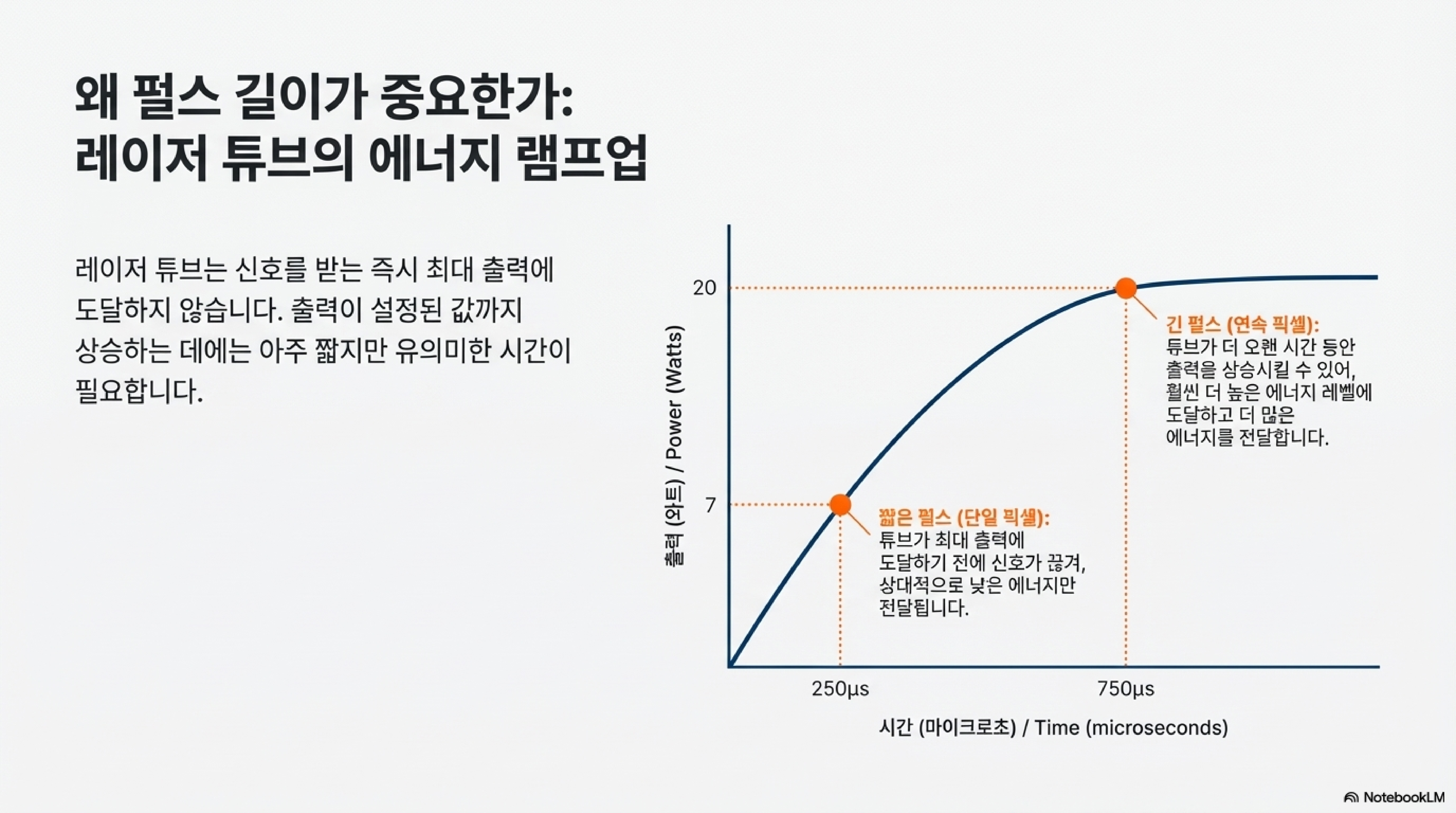 레이저는 스위치를 켠다고 해서 즉시 최대 파워에 도달하지 않습니다. 레이저 튜브 내부에서 질소 가스가 이온화되고 그 에너지가 이산화탄소 분자로 전달되어 광자를 방출하기까지, 미세하지만 결정적인 시간이 필요하기 때문입니다. 이 '파워 램프업' 시간이 모든 것을 설명해 주었습니다.