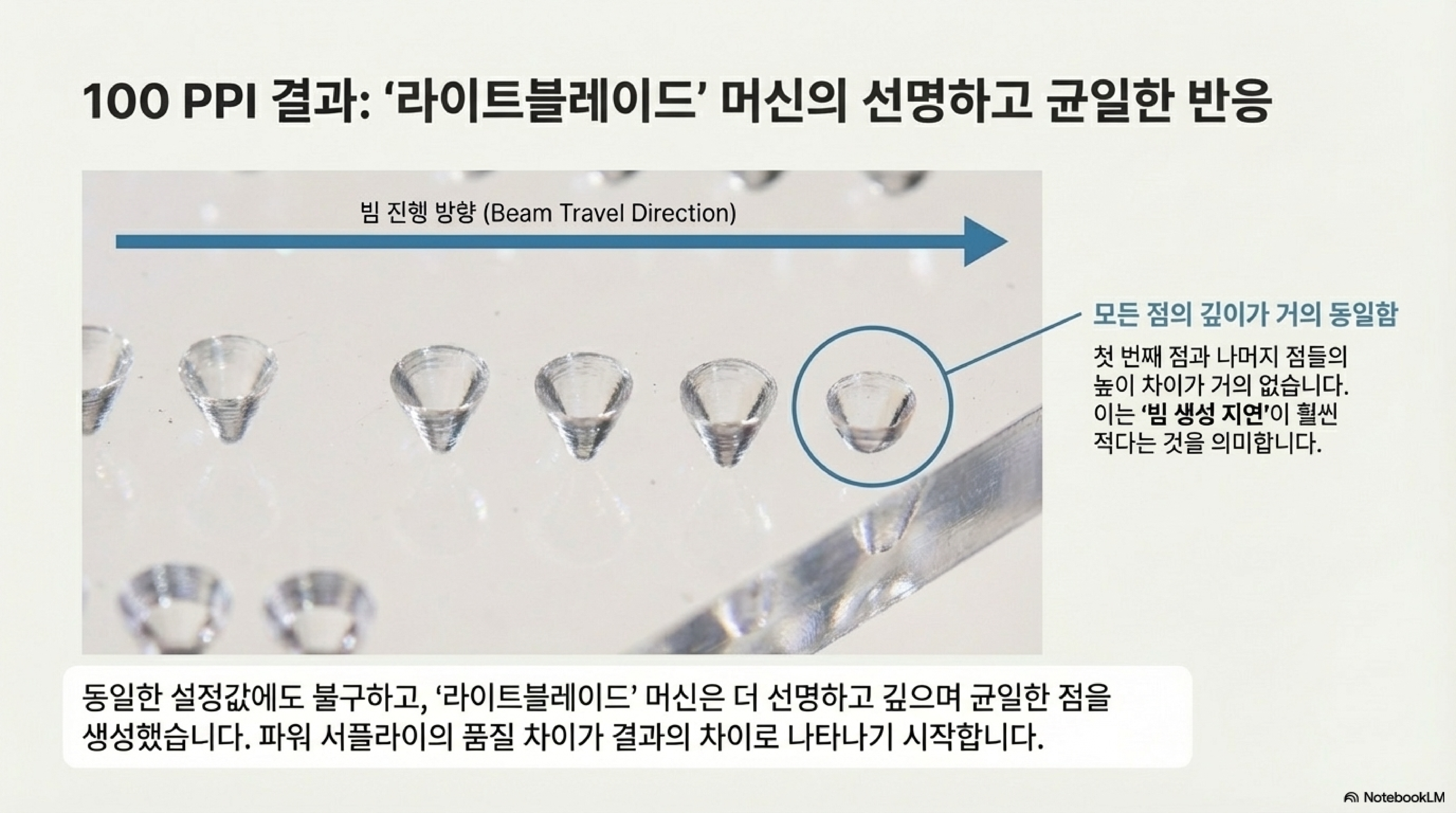 이 예상 밖의 결과는 우리를 단 하나의 논리적 결론으로 이끕니다. 레이저 튜브 내부에서 가스가 반응하는 물리 현상은 어떤 기계든 동일합니다. 그렇다면 이 성능 차이를 만드는 유일한 변수는 바로 기계의 심장, **"파워 서플라이의 설계와 성능"**이라는 것입니다.