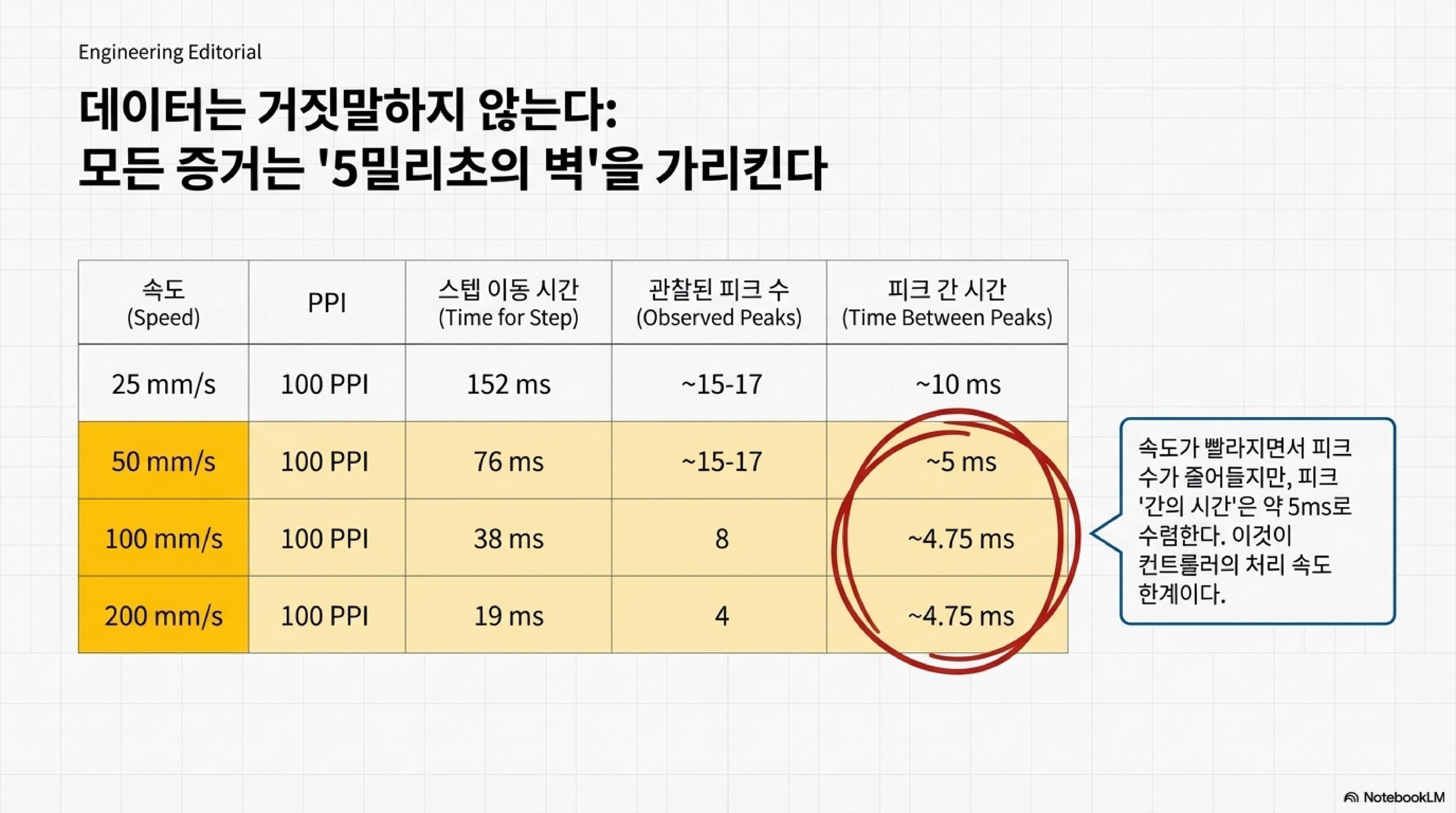 앞서 발견한 'DPI의 환상'을 설명할 수 있는 가장 유력한 가설은 레이저 컨트롤러 소프트웨어 또는 알고리즘에 숨겨진 '최소 응답 시간' 때문이라는 것입니다.