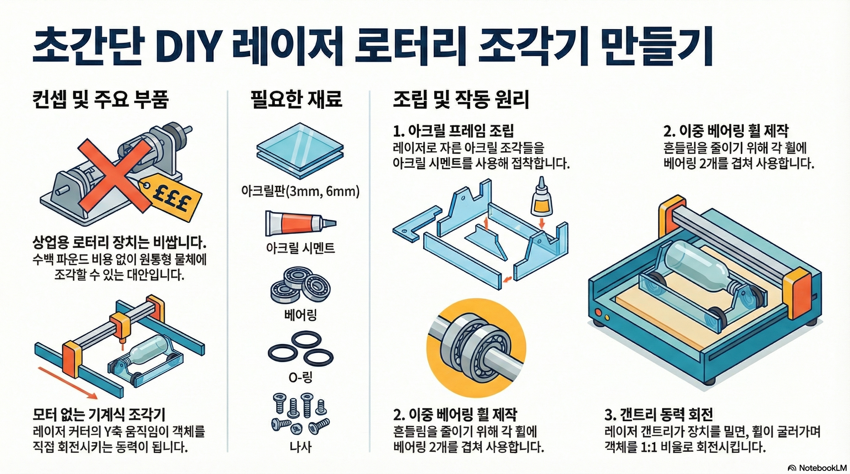 레이저 커터를 사용하는 취미 생활자라면 누구나 한 번쯤 겪는 문제가 있습니다. 바로 회전 조각기와 같은 액세서리의 높은 가격입니다. 수백 파운드에 달하는 이 장비들은 원통형 물체에 멋진 디자인을 새기고 싶다는 꿈을 좌절시키곤 합니다.