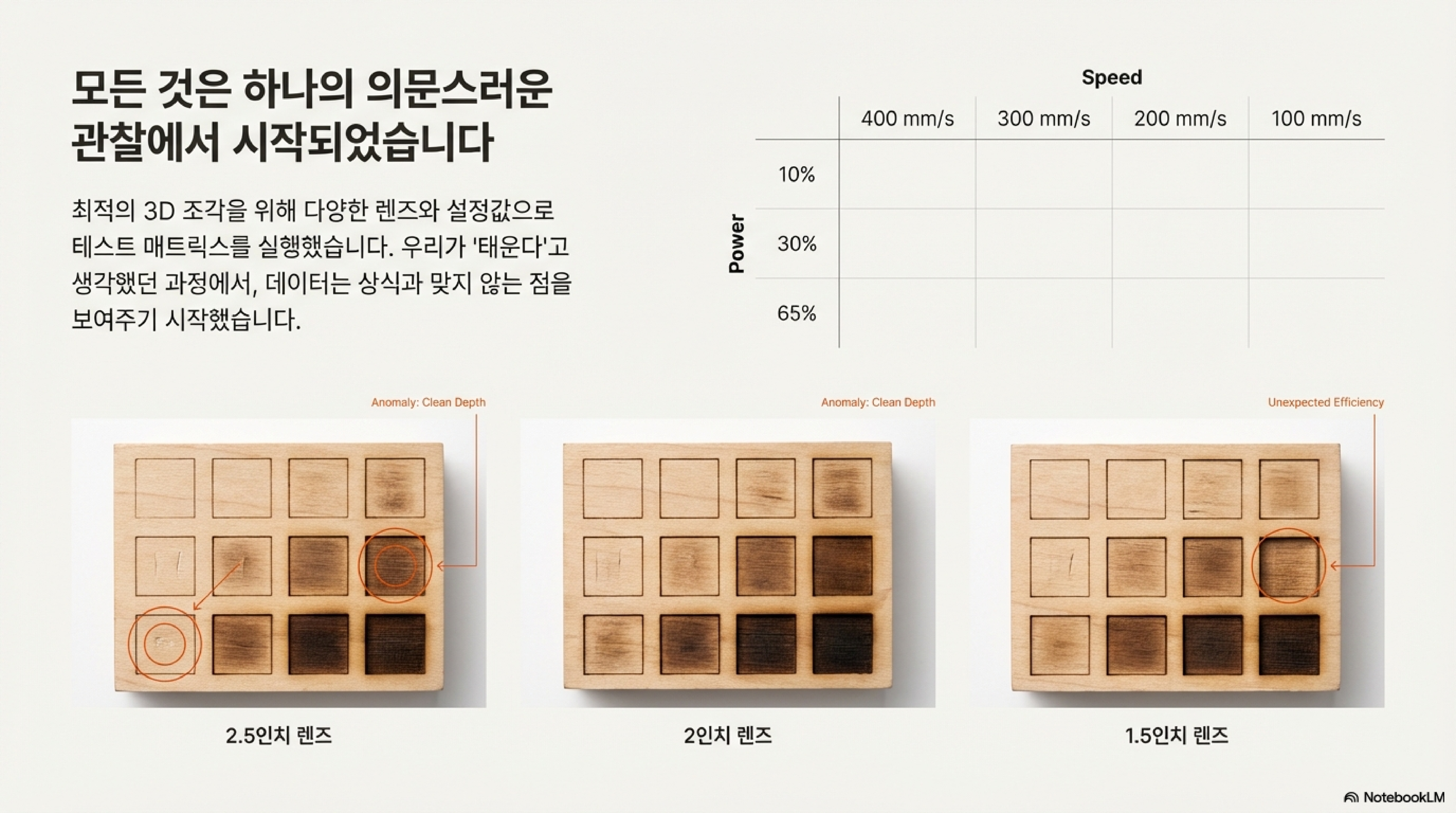 가장 놀라운 발견은 바로 이것입니다. 올바른 조건에서 레이저는 나무를 태우는 것이 아니라, 실제로는 기화시킵니다.