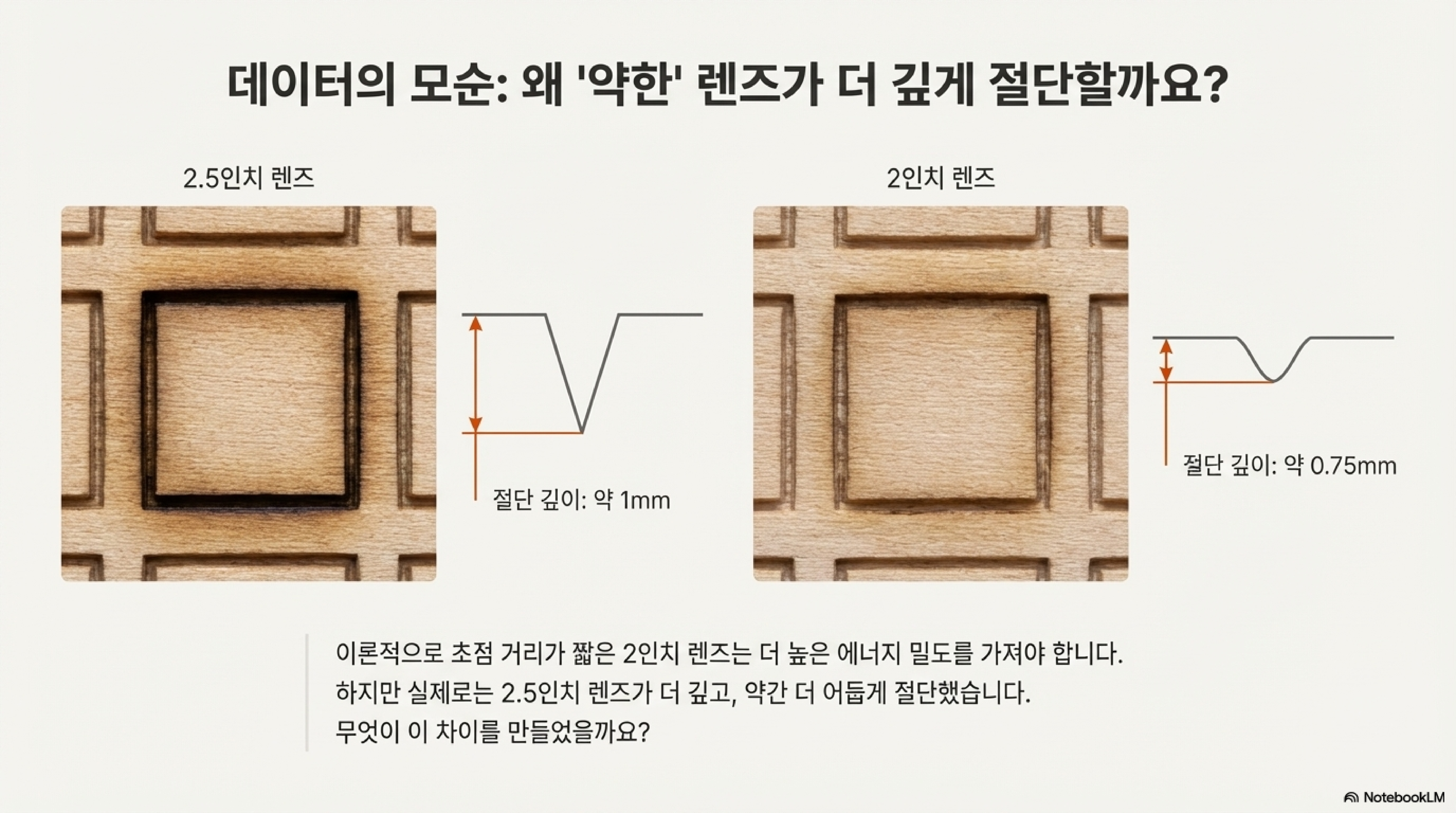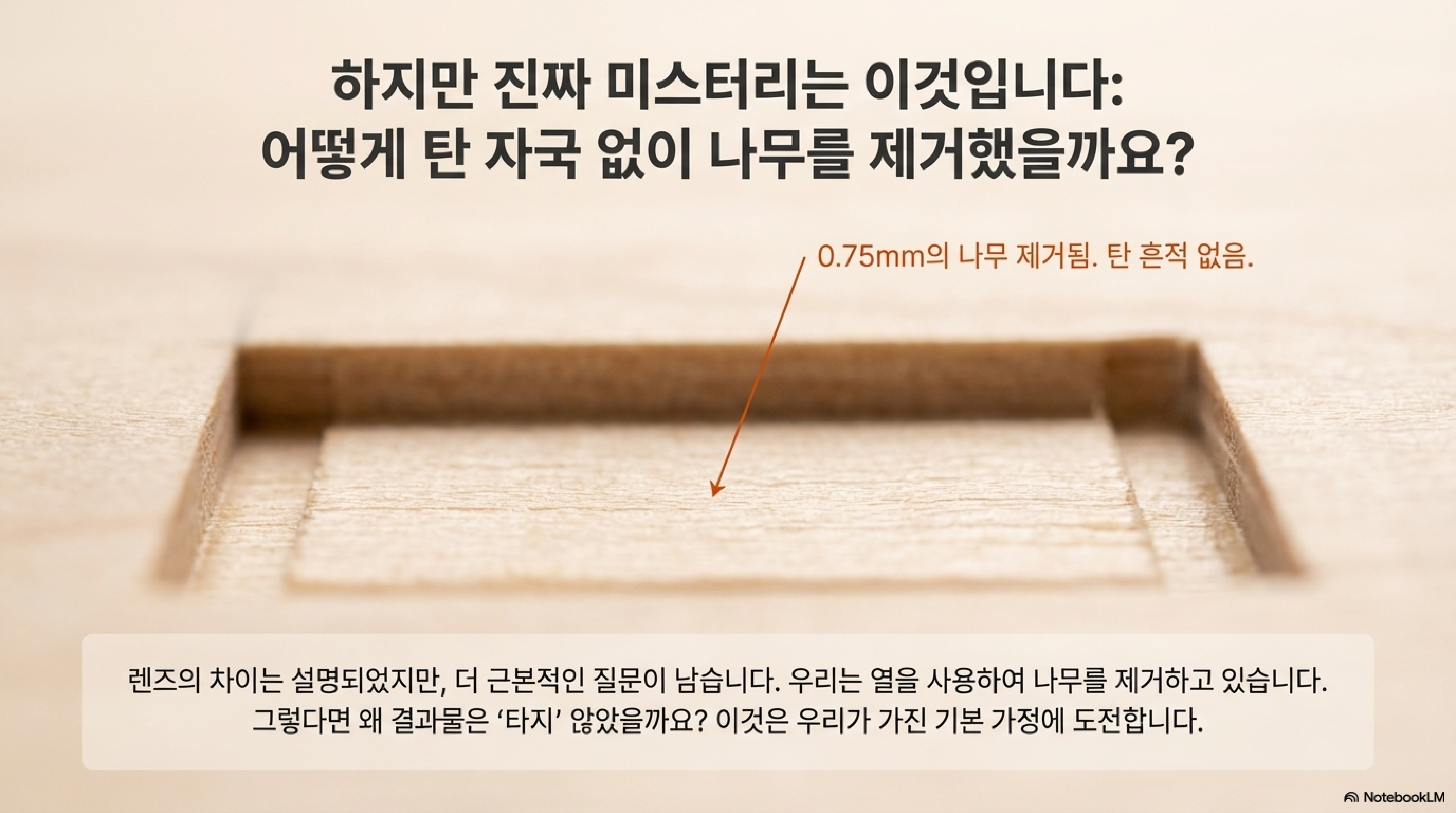 어떻게 0.75mm 두께의 나무를 태우거나 그을리지 않고 제거할 수 있었을까? 이것이야말로 제 눈앞에 계속 있었지만, 스스로에게 던져야 할 질문이라는 것을 미처 깨닫지 못했던 명백한 질문이었습니다.
