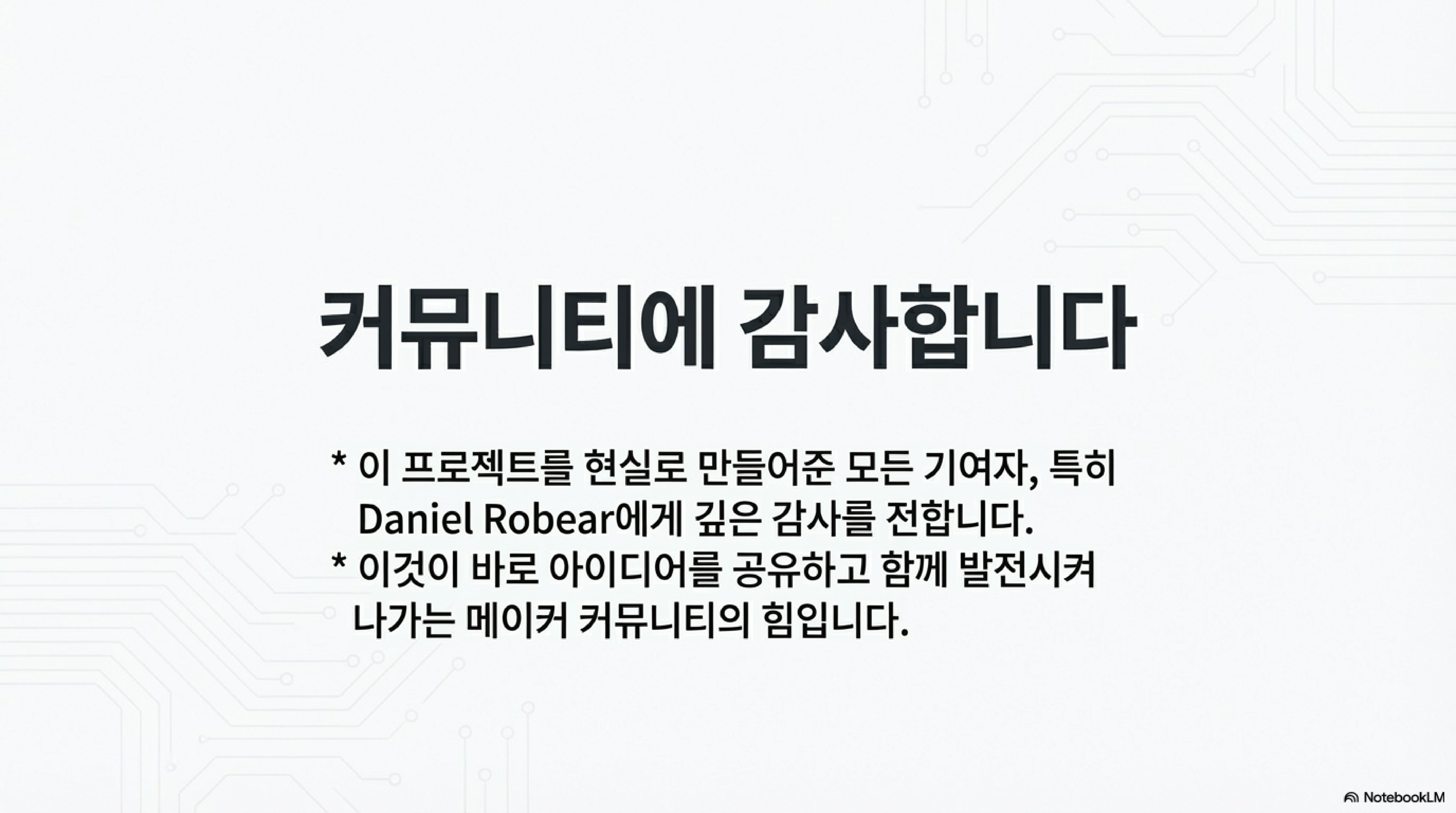 그는 포기하는 대신, 자신의 한계를 명확히 인지했습니다. 그리고 이러한 자기 인식을 바탕으로 필요한 기술을 가진 다니엘 로베어와 협력하는 길을 택했습니다. 이것은 약점이 아니라, 프로젝트가 잠재력을 최대한 발휘할 수 있도록 만든 진정한 강점이었습니다. 자신의 한계를 아는 것은 혼자서 모든 것을 해결하려는 고집을 버리고, 더 큰 가능성을 향해 커뮤니티에 손을 내미는 첫걸음입니다. 이는 현대의 메이커 및 오픈소스 운동의 핵심 철학이기도 합니다.
