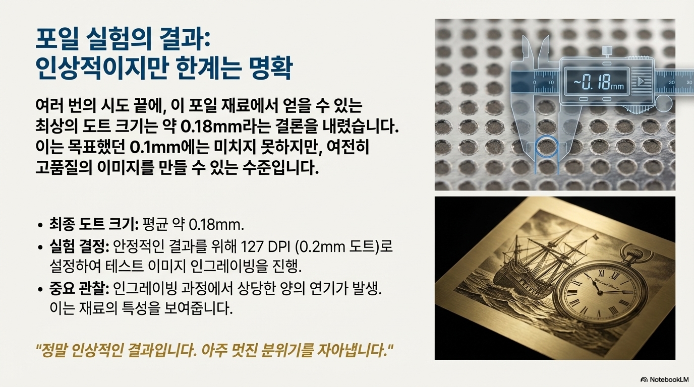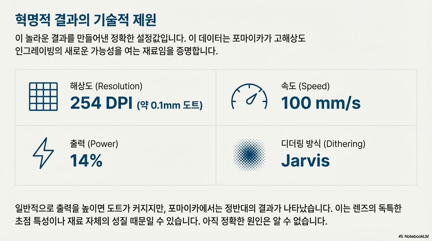 이것은 포마이카라는 평범한 재료가 단지 '결과가 좋은' 것을 넘어, 우리가 레이저와 재료의 상호작용에 대해 얼마나 편협한 시각을 가졌는지 깨닫게 해주었습니다. 모든 재료는 고유의 물리적 특성을 가지며, 우리의 기본 가정이 언제든 깨질 수 있다는 중요한 교훈을 얻었습니다.