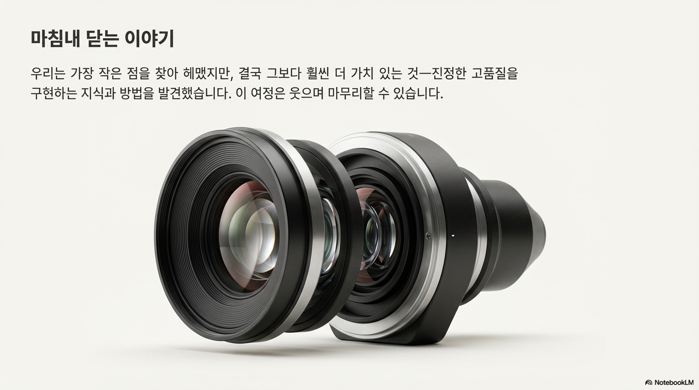 6개월간의 여정은 단순히 세상에서 가장 작은 점을 찾는 기술적 탐구가 아니었습니다. 그것은 기술의 진정한 한계가 어디에 있으며, 사양과 실제 결과물 사이에서 최적의 균형점은 어떻게 찾아야 하는지를 깨닫는 과정이었습니다. 가장 높은 사양이 항상 최고의 결과로 이어지는 것은 아니며, 때로는 한 걸음 물러나 '충분히 좋은' 지점을 찾는 것이 완벽을 향한 진정한 길일 수 있습니다.