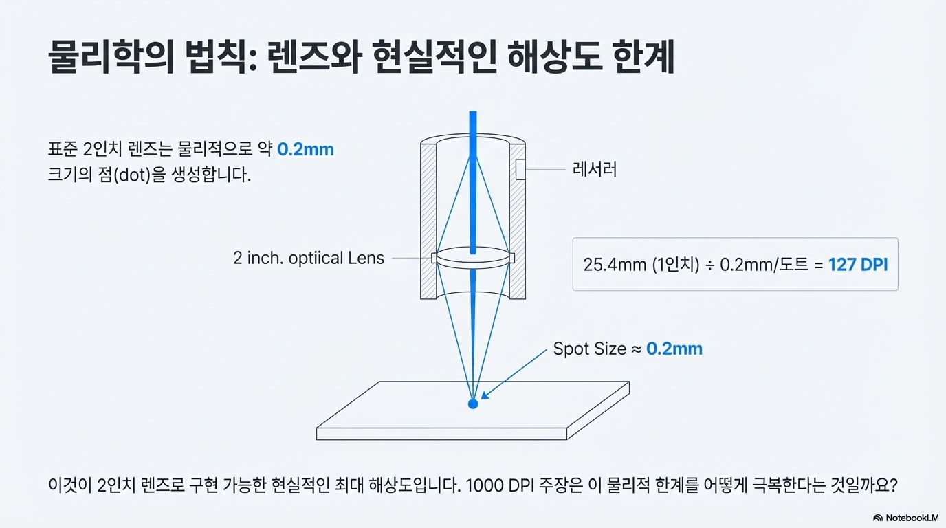 분석가가 썬더 레이저의 자체 데이터를 검토하면서 조사는 결정적인 전환점을 맞이했습니다. 1000 DPI 주장의 허점은 다름 아닌 그들이 스스로 공개한 정보에서 명확히 드러났기 때문입니다. 썬더 레이저 웹사이트에 게시된 렌즈 사양을 확인한 결과는 충격적이었습니다.