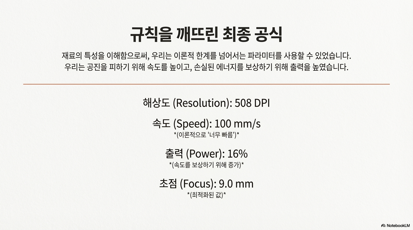 최고의 결과를 얻는 길은 단순히 사양표의 숫자(DPI)를 맹목적으로 좇는 데 있지 않았습니다. 그것은 기계의 전자적 한계, 기계적 특성, 그리고 사용되는 재료의 고유한 성질 사이의 복잡한 상호작용을 깊이 이해하는 과정이었습니다.