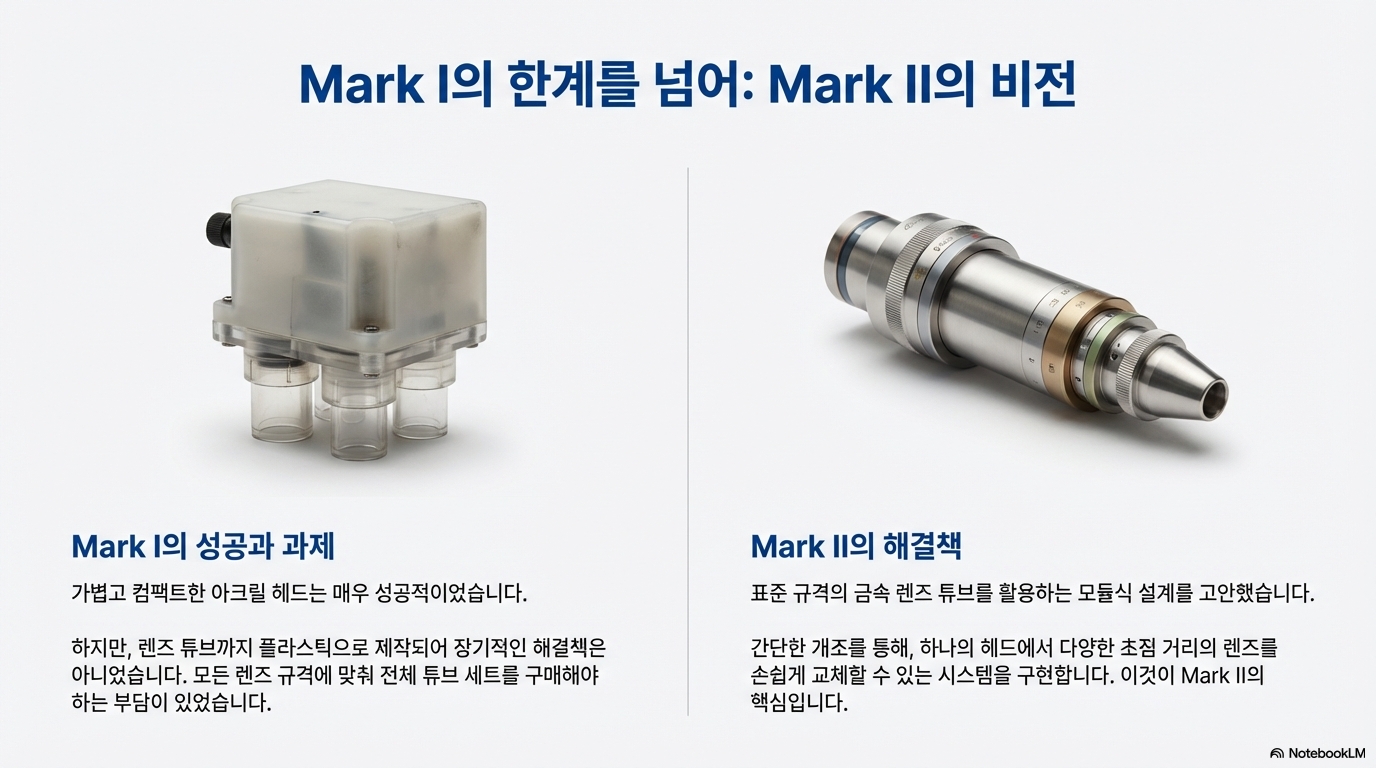 이 프로젝트의 가장 시적인 측면은 '반복적 설계(iterative design)'라는 개념, 즉 에고보다 진보를 우선시하는 태도를 시각적으로 보여준다는 점입니다. 제작자는 자신이 만들었던 Mark 1 디자인의 단점, 즉 다른 사람들이 구하기 어려운 맞춤형 알루미늄 렌즈 튜브가 필요하다는 점을 명확히 인식했습니다.