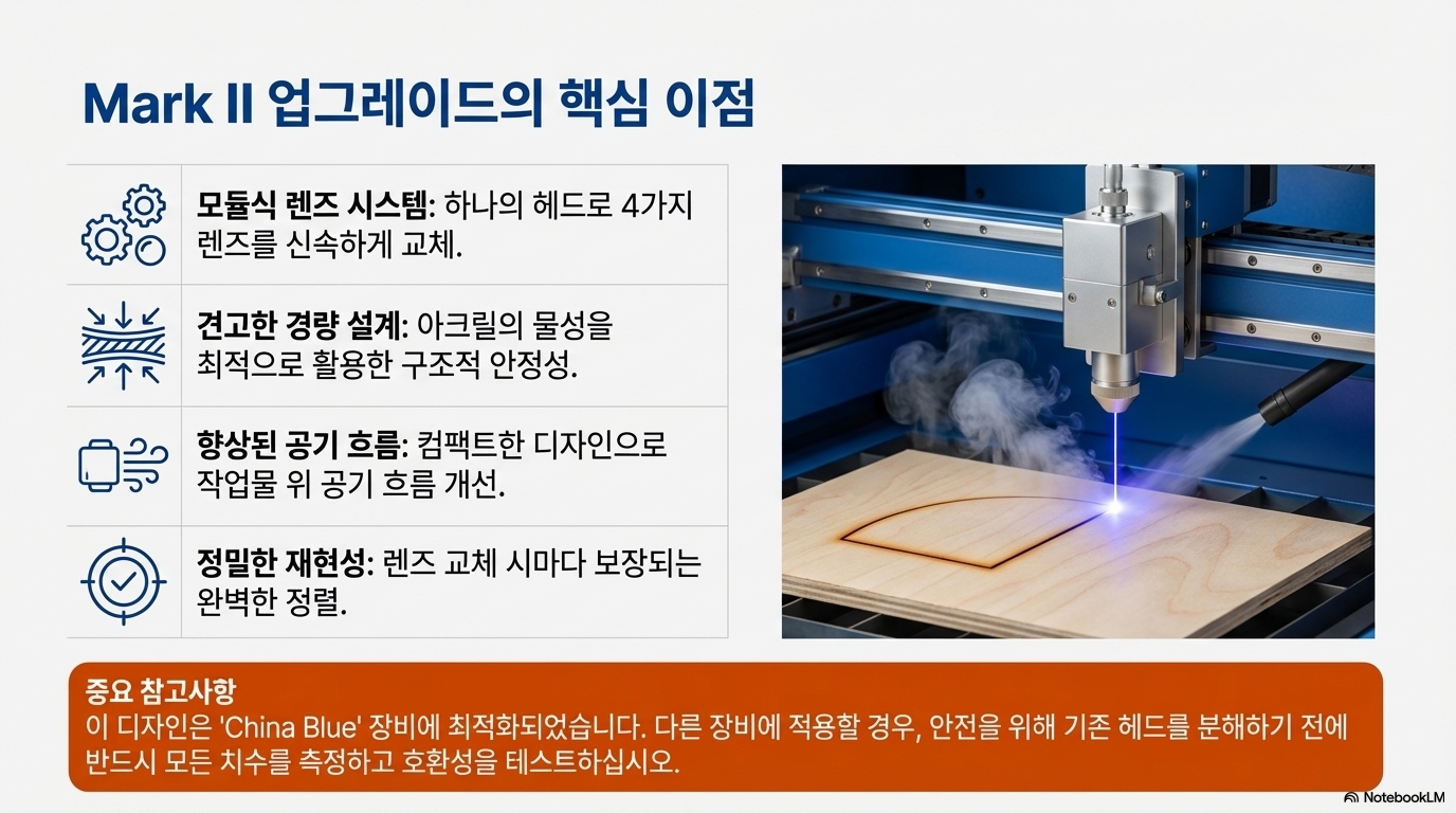 오늘 이야기는 단순히 '만드는 방법'에 대한 설명서가 아닙니다. 이것은 한 유튜브 크리에이터가 'China Blue'라는 저가형 레이저 커터를 위해, 흔한 아크릴판으로 정밀한 맞춤형 헤드를 제작하는 과정을 통해 진정한 메이커의 정신(ethos)을 보여주는 심도 깊은 사례 연구입니다. 더 흥미로운 점은, 이 새로운 Mark 2 버전의 부품을 만들기 위해 기존의 Mark 1 헤드를 사용했다는 것입니다. 마치 자신의 이전 버전이 "스스로의 무덤을 파는" 것처럼 말이죠. 이 창의적인 여정은 혁신적인 문제 해결의 핵심 원칙들을 드러냅니다. 함께 그 속에 숨겨진 5가지 놀라운 교훈을 살펴보겠습니다.