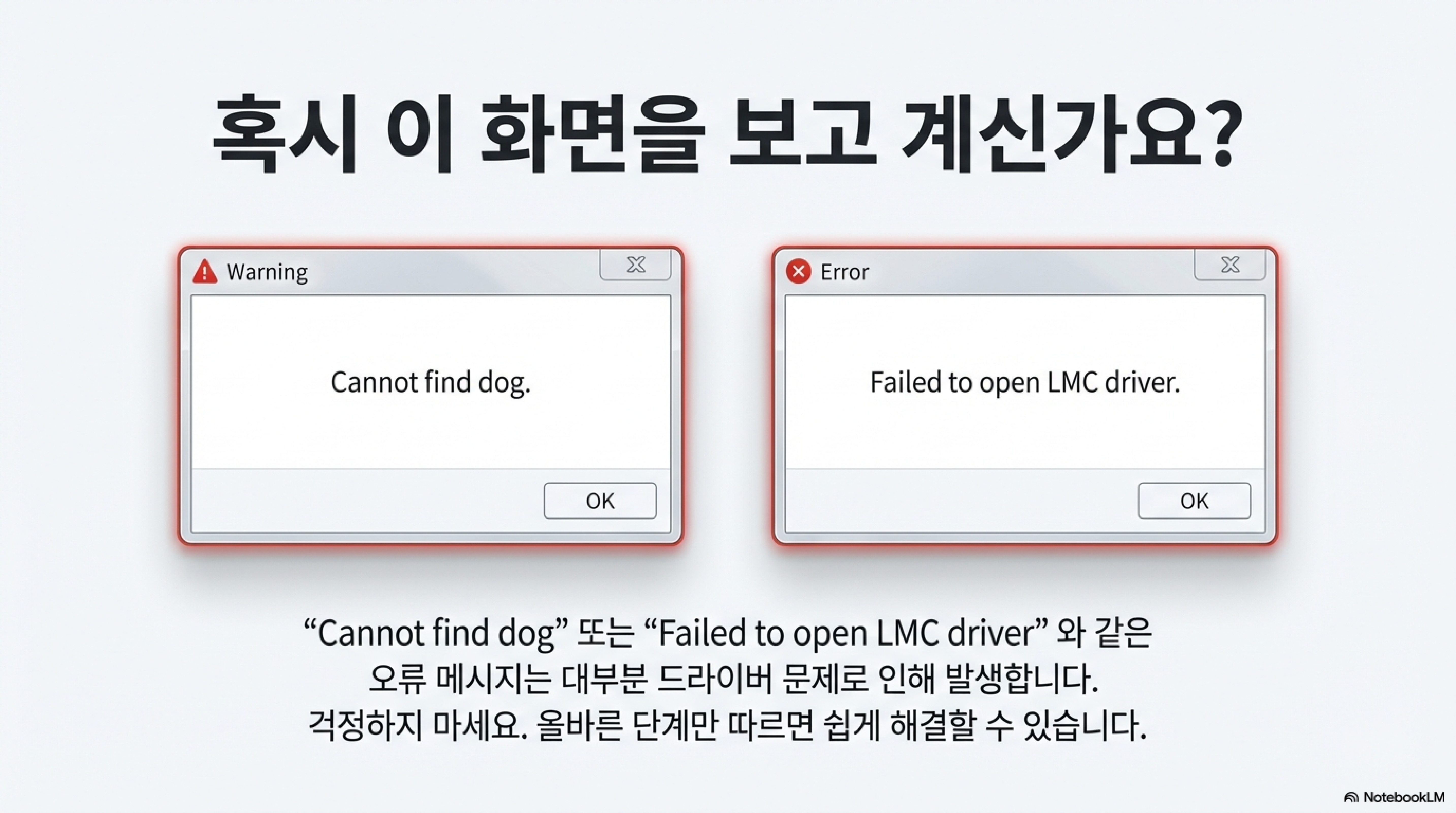 드라이버를 성공적으로 설치한 후에도 Ezcad를 실행했을 때 "Failed to open lmc driver" (lmc 드라이버를 열지 못했습니다) 또는 "cannot find dog" (동글을 찾을 수 없습니다) 와 같은 오류 메시지가 나타날 수 있습니다. 이 메시지를 보면 방금 설치한 드라이버에 문제가 있다고 생각하기 쉽지만, 사실 원인은 놀랍도록 간단한 곳에 있습니다. 바로 레이저 장비의 전원이 꺼져 있는 경우입니다.