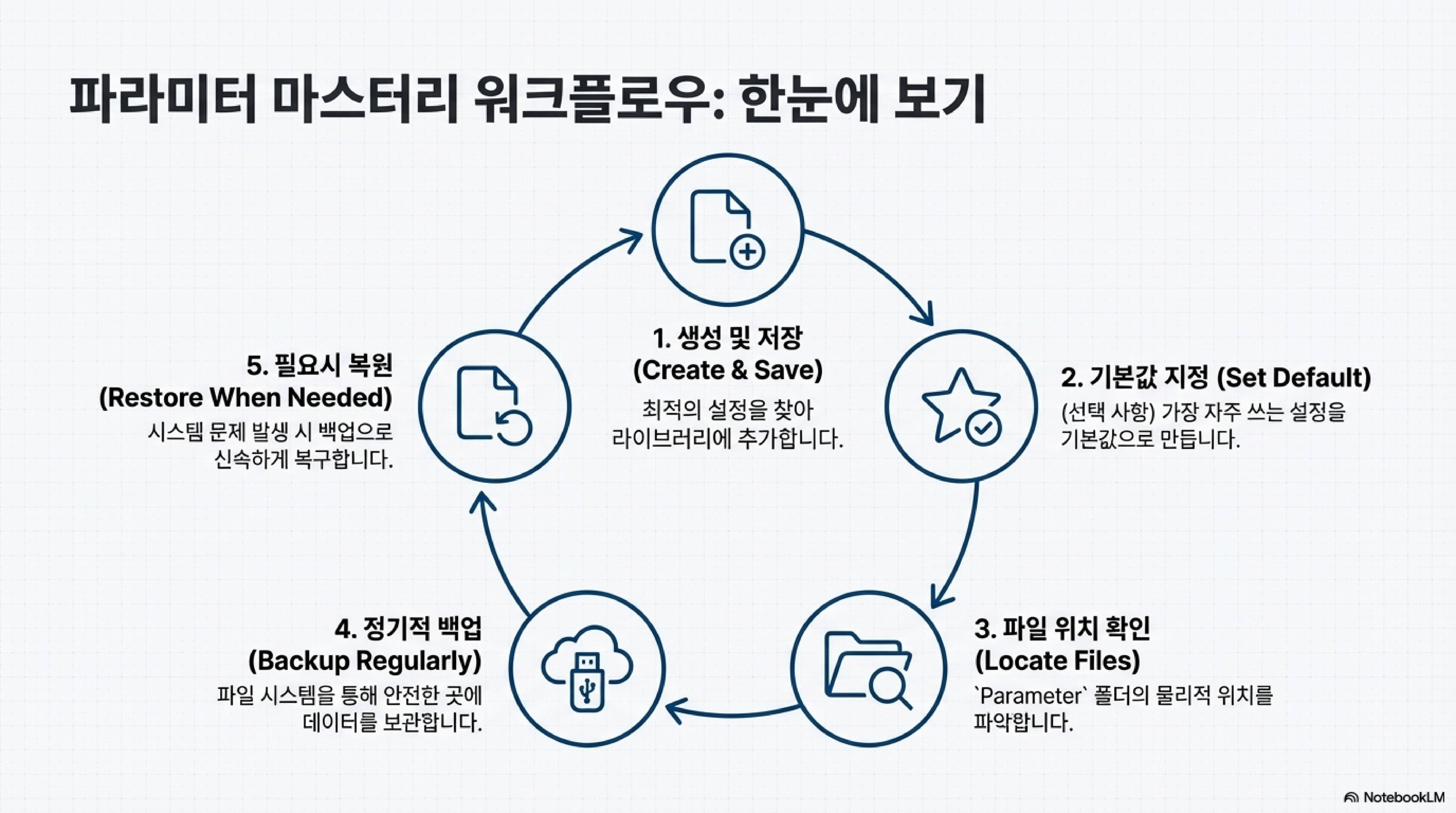 이것이 왜 중요할까요? 갑작스러운 컴퓨터 고장이나 소프트웨어 오류가 발생하더라도 더 이상 당황할 필요가 없습니다. 백업해 둔 파라미터 파일들을 원래 위치에 복사해 넣기만 하면, 단 몇 초 만에 여러분이 수개월, 수년에 걸쳐 쌓아온 모든 작업 데이터를 완벽하게 복원할 수 있습니다. 데이터 백업은 선택이 아닌 필수입니다.