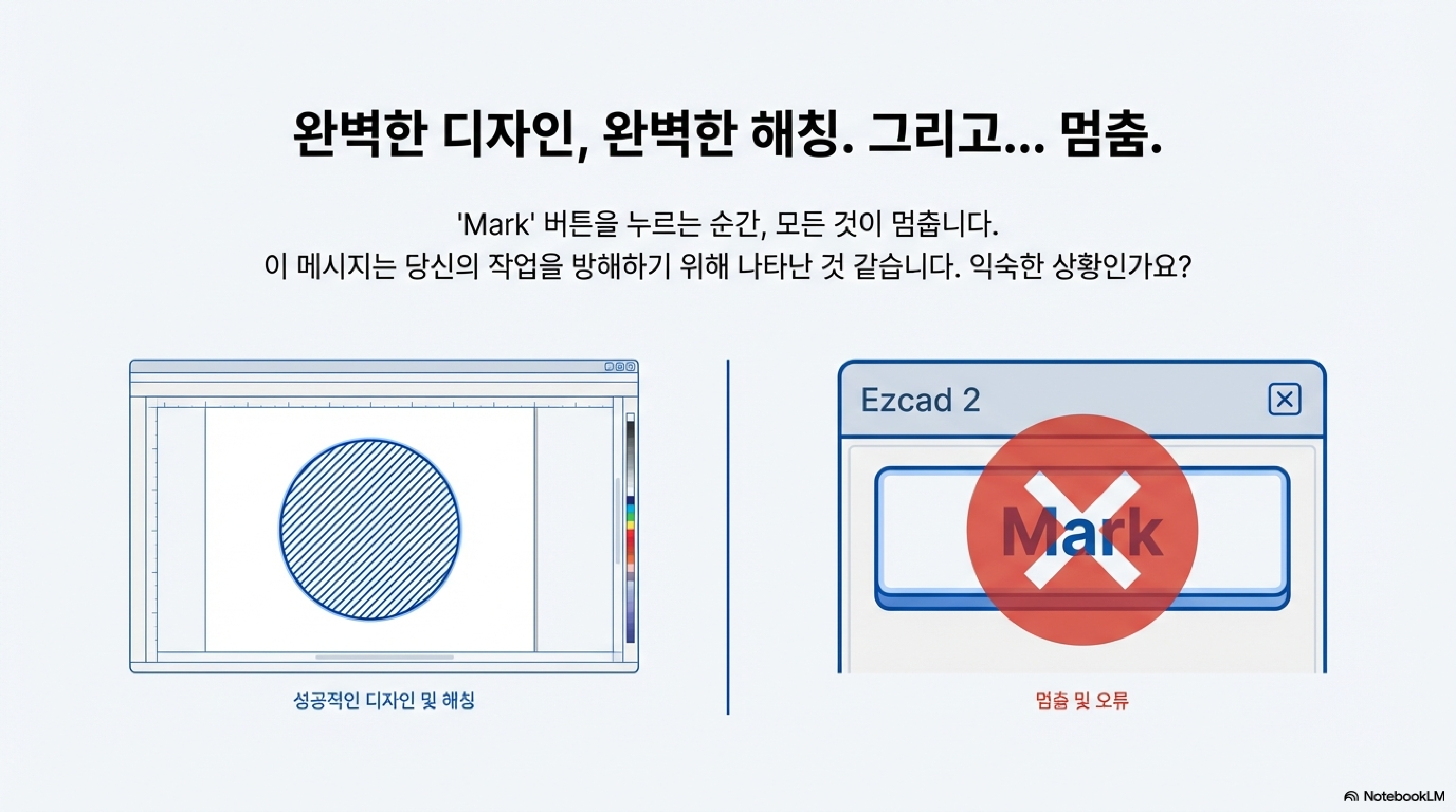 레이저 각인 작업을 위해 모든 준비를 마치고 자신 있게 'Mark' 버튼을 누르는 순간, "current mark count is already greater than total count"라는 팝업 메시지가 뜨며 작업이 멈춰버린 경험이 있으신가요? 이 갑작스러운 오류는 많은 Ezcad 사용자들을 당혹스럽게 만드는, 매우 흔하면서도 성가신 문제입니다.