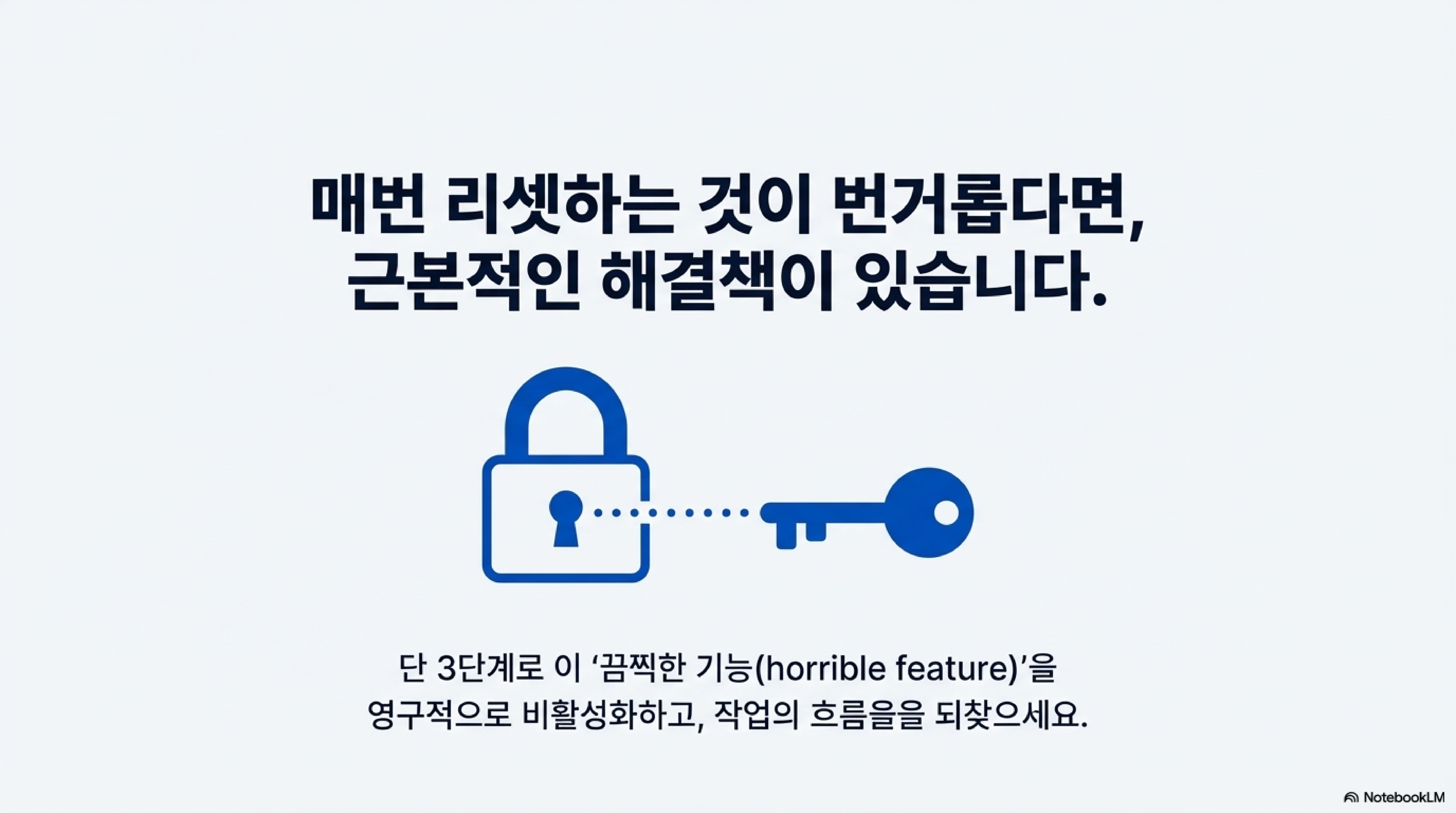 자, 이제 매번 'Reset' 버튼을 누르는 번거로움에서 완전히 해방될 시간입니다. 이 문제를 근본적으로 해결하여 다시는 마주치지 않게 할 영구적인 방법을 알려드리겠습니다. 아래 단계를 그대로 따라 하시면 됩니다.