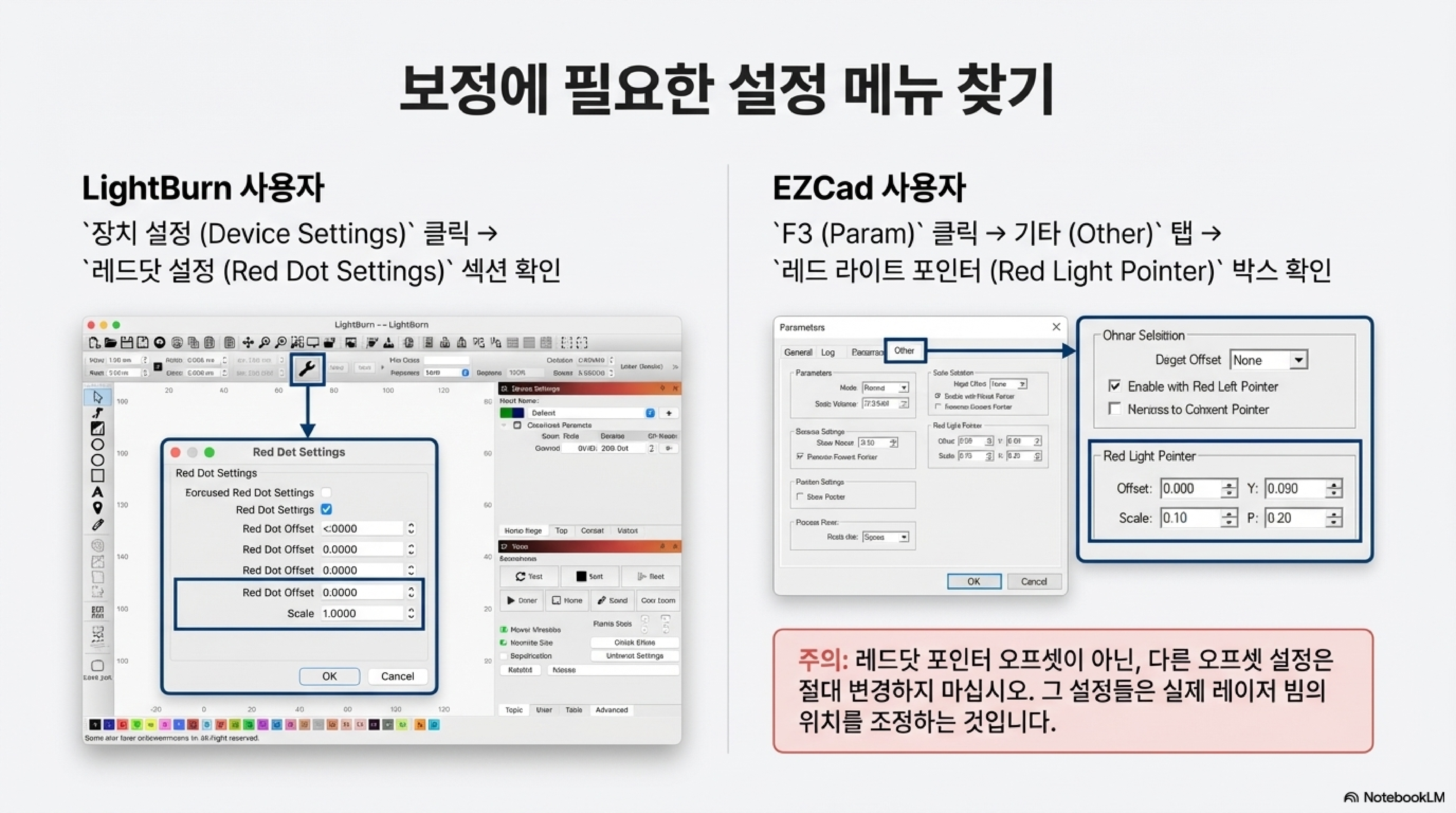 - 레드닷이 실제 각인선 바깥쪽에 위치하도록 설정