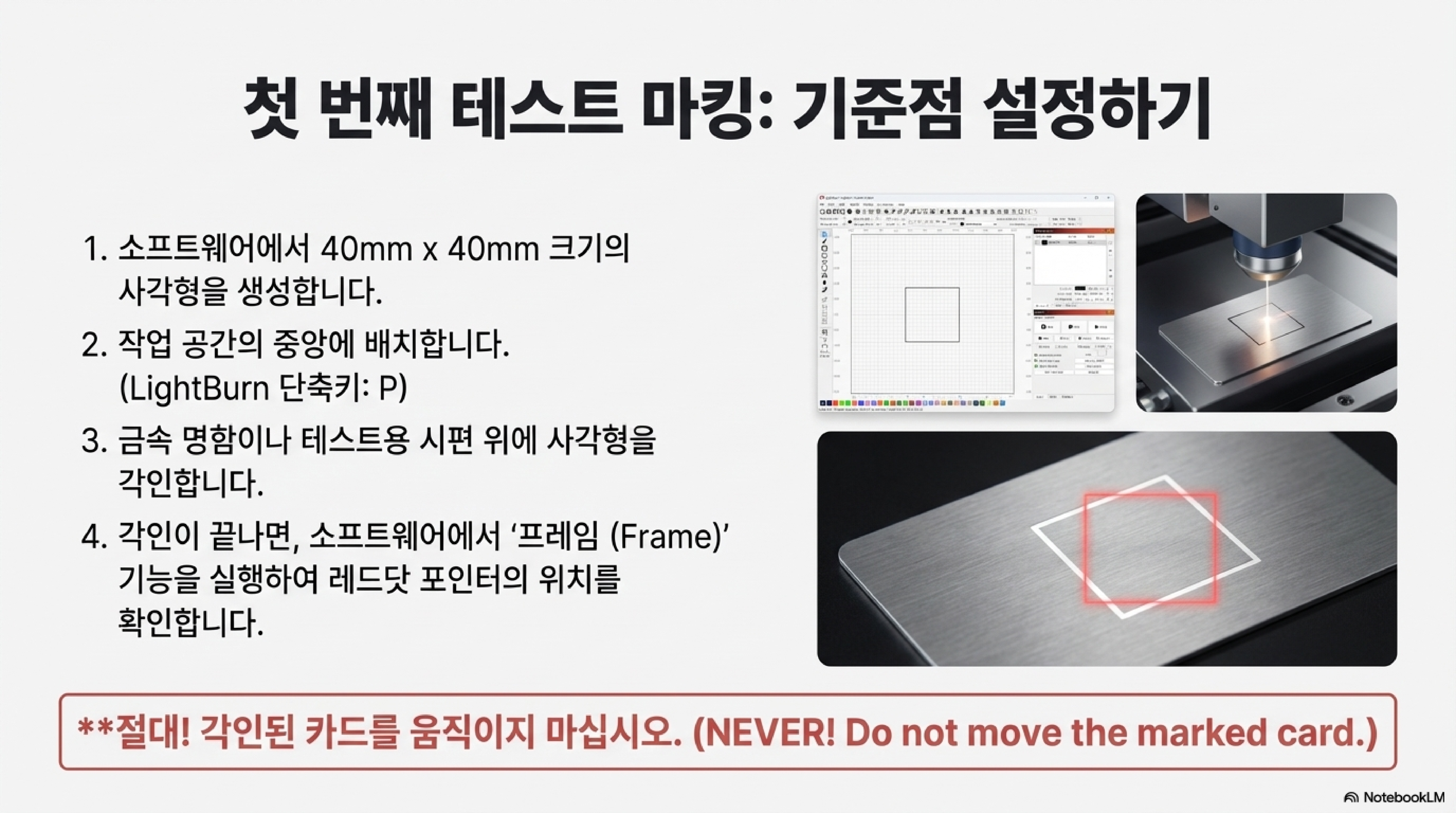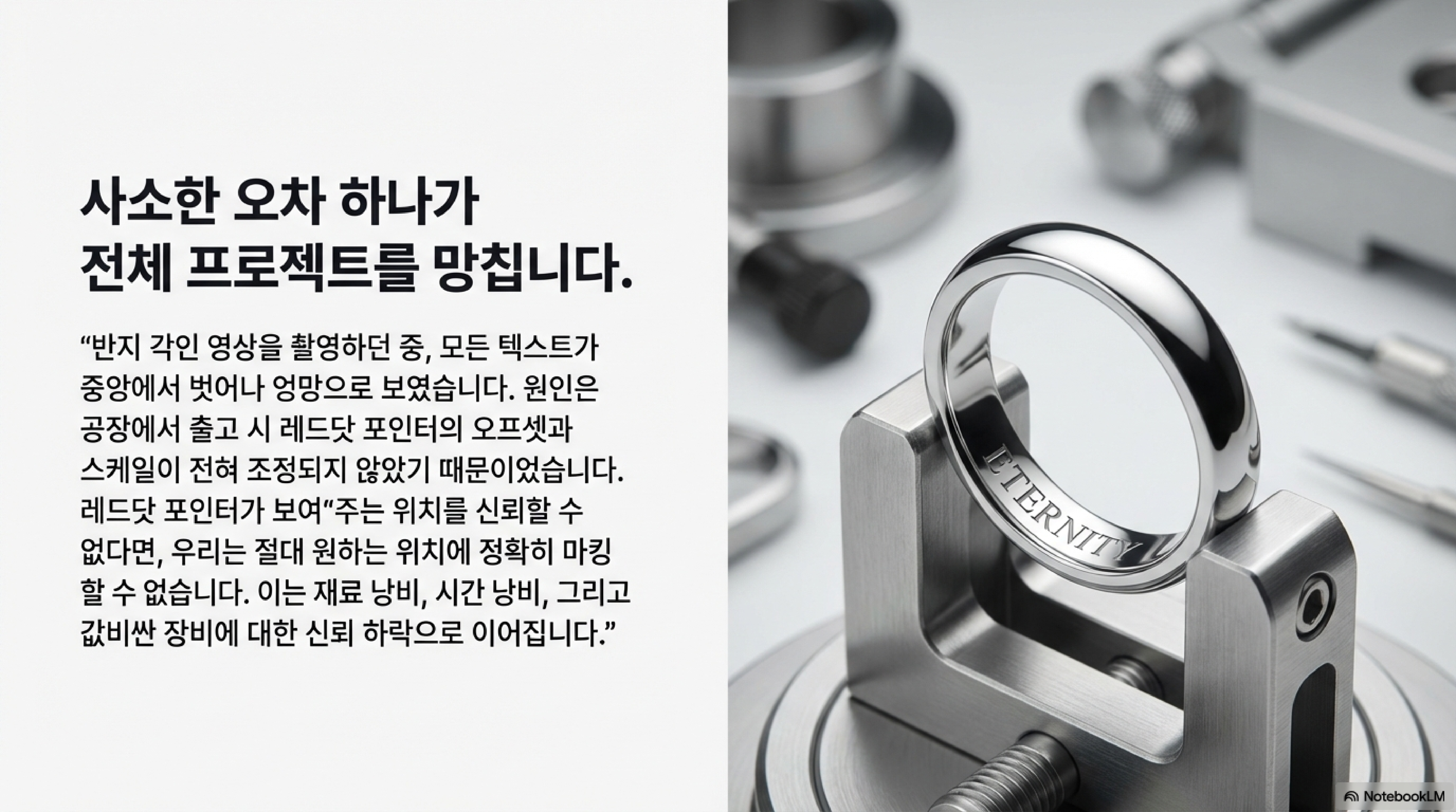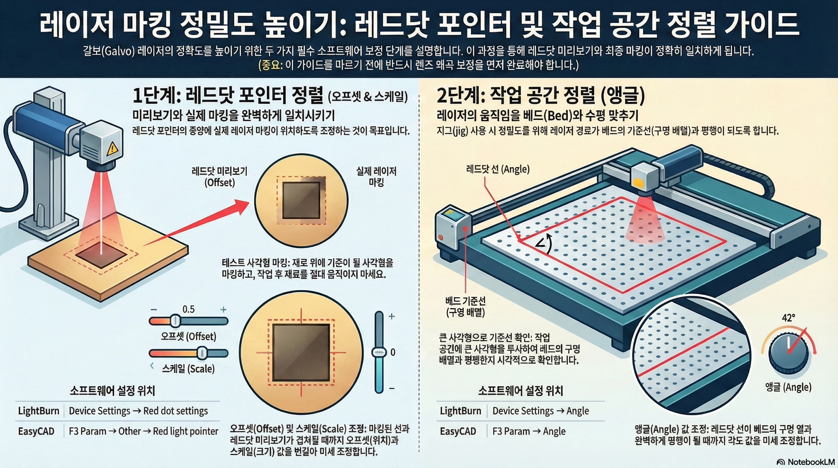 정성껏 준비한 레이저 각인 작업. 레드닷 포인터로 미리보기를 했을 땐 완벽해 보였는데, 막상 각인된 결과물은 미세하게 빗나가 있어 좌절한 경험이 있으신가요? 사실 이 글은, 한 전문가가 다른 작업(회전 링 각인) 영상을 촬영하다가 자신의 각인이 중앙에서 벗어난 것을 발견하고 그 원인을 파헤치면서 시작되었습니다. 이런 답답한 상황의 주범은 바로 '레드닷 포인터 정렬' 문제일 가능성이 높습니다. 많은 사용자들이 간과하지만, 정확한 정렬은 작업의 성패를 가르는 결정적인 요소입니다. 이 글에서는 전문가의 튜토리얼에서 발견한, 놀랍지만 반드시 알아야 할 4가지 핵심 포인트를 통해 여러분이 기계에 대한 완벽한 신뢰를 되찾고 정밀한 결과물을 얻을 수 있도록 돕겠습니다.