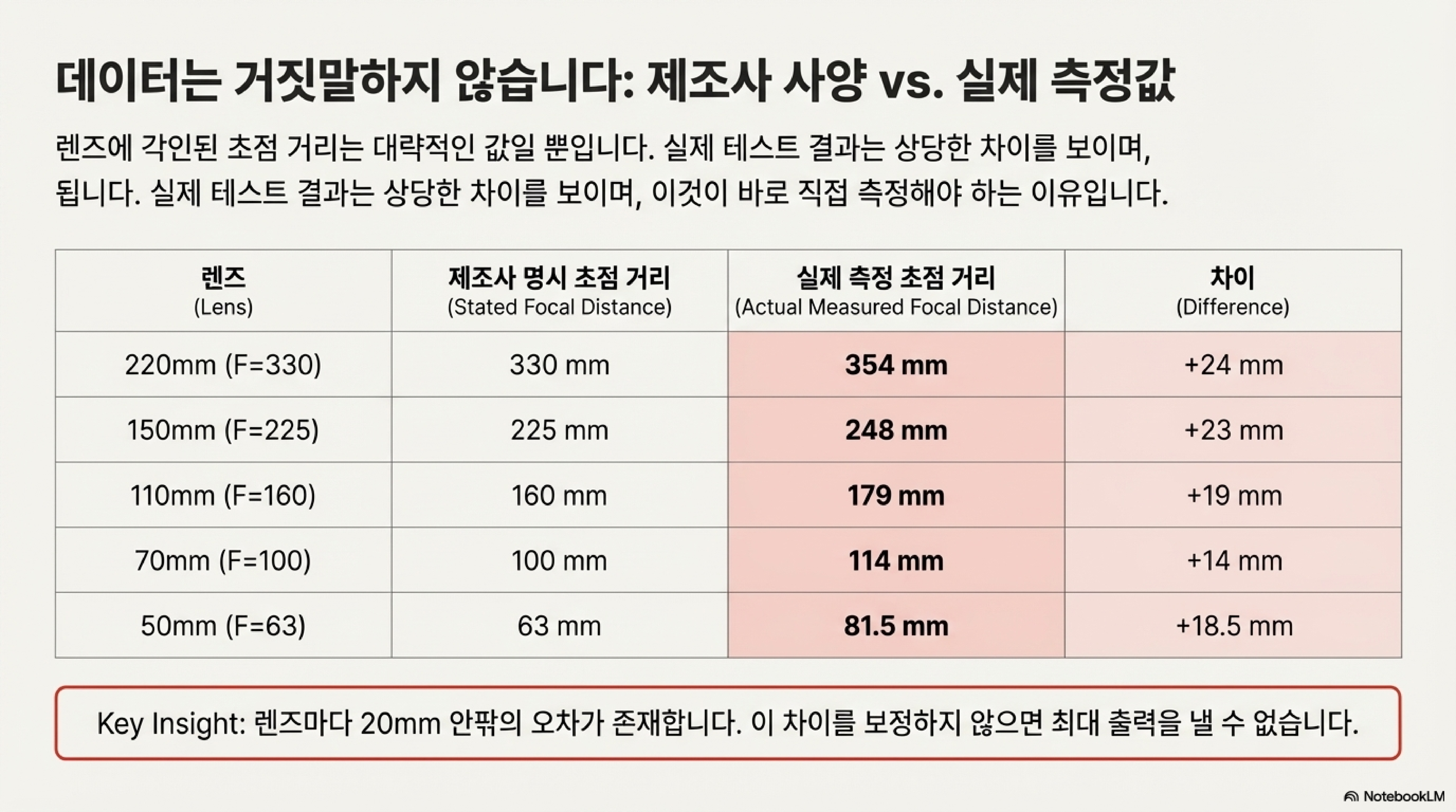 가장 충격적인 사실부터 시작하겠습니다. 당신이 신뢰했던 렌즈에 새겨진 초점 거리 값은 실제 측정값과 크게 다를 수 있습니다. 직접 테스트한 결과, 그 차이는 무려 20mm 이상 벌어지기도 했습니다.