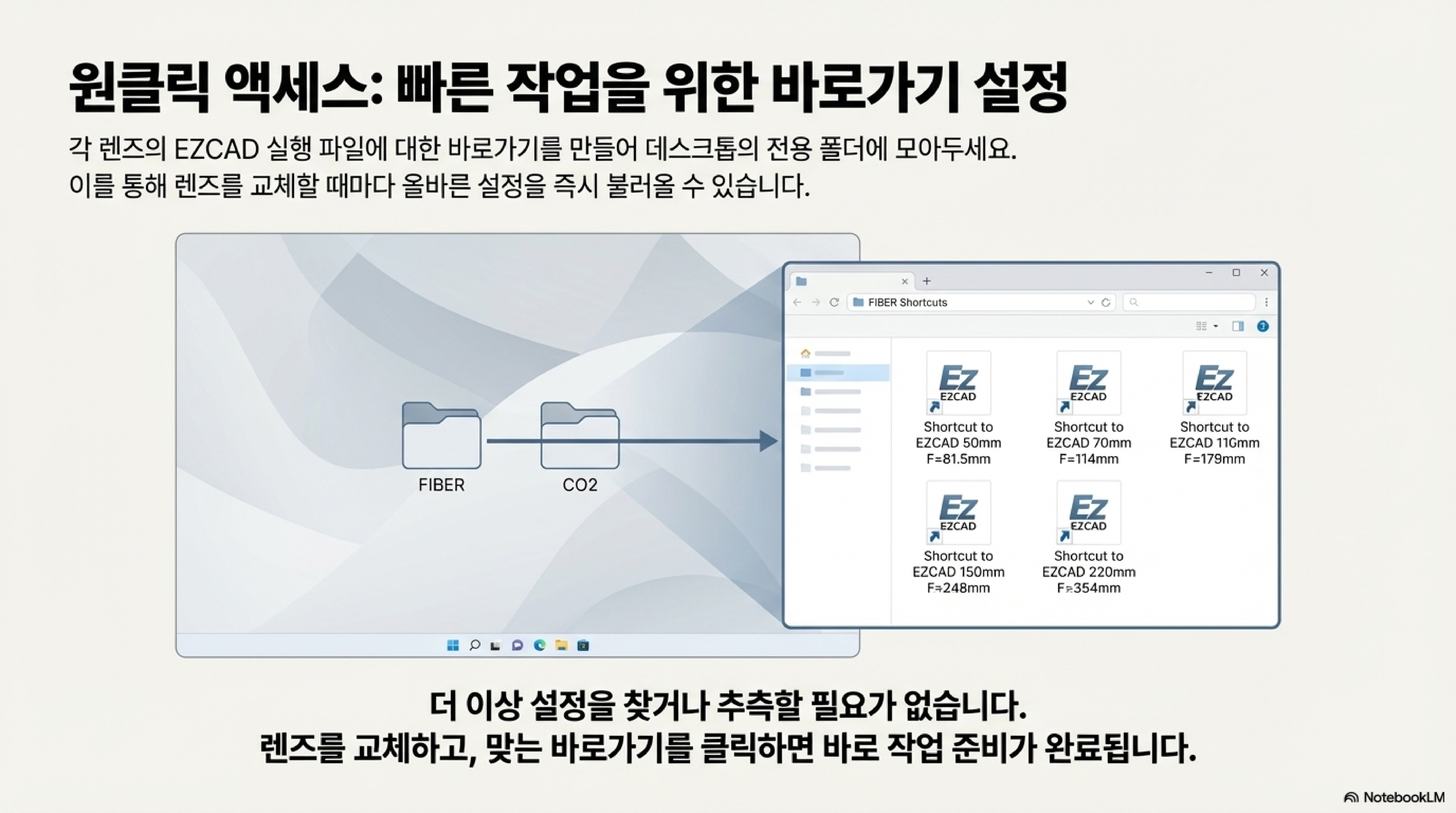 렌즈와 초점 스틱을 물리적으로 정리하는 것만큼 중요한 것이 바로 소프트웨어(EZCAD) 설정을 체계적으로 관리하는 것입니다. 이 방법은 각 렌즈가 제조사의 오래되거나 일관성 없는 수동 보정값에서 벗어나, 깨끗하고 표준화된 EZCAD를 기반으로 작동하도록 보장합니다. 매번 설정을 새로 하는 비효율을 없애고, 각 렌즈에 최적화된 '디지털 환경'을 구축해 봅시다.