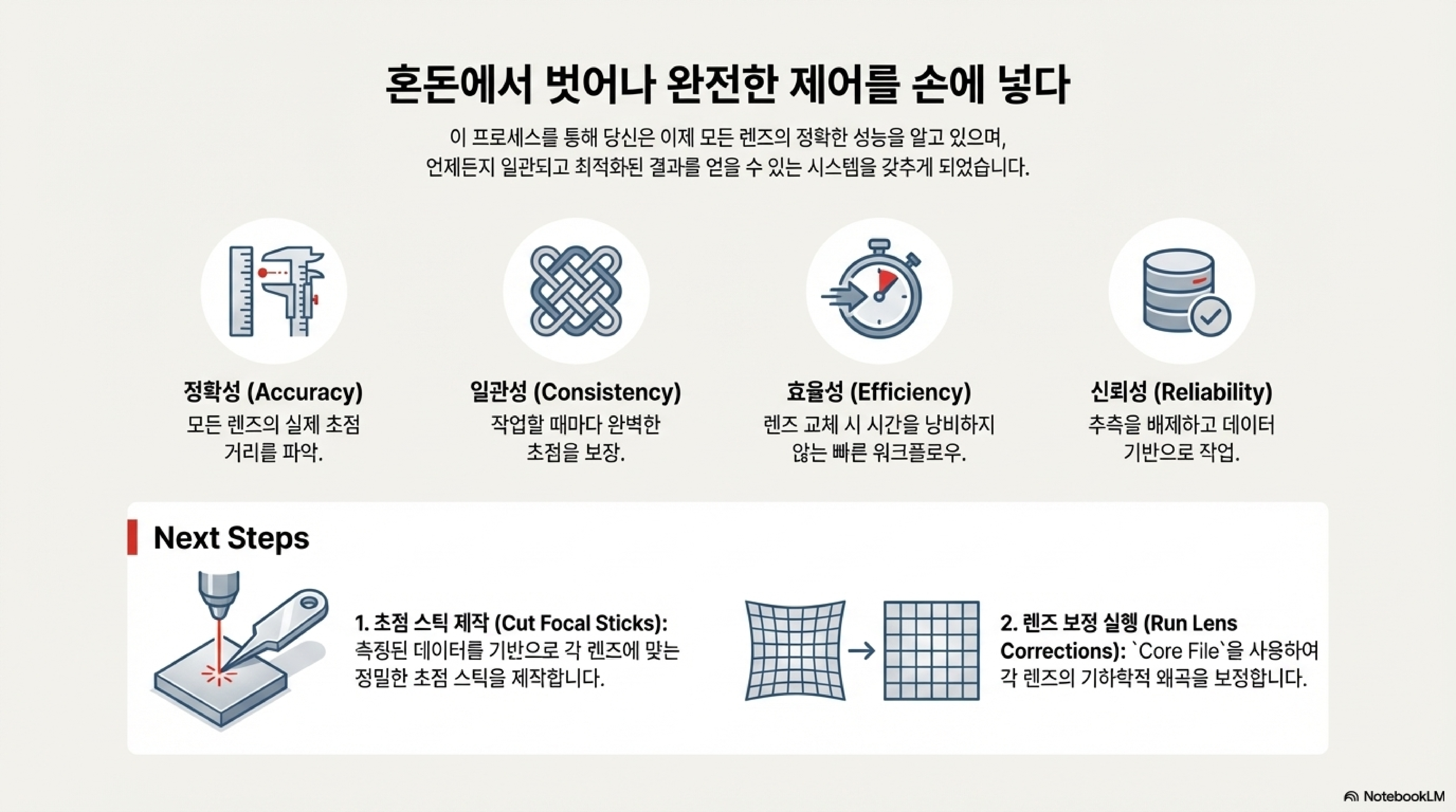 이 간단한 시스템만으로도 설정 오류를 줄이고 렌즈 교체 시간을 획기적으로 단축하여 작업 효율성을 극대화할 수 있습니다.
