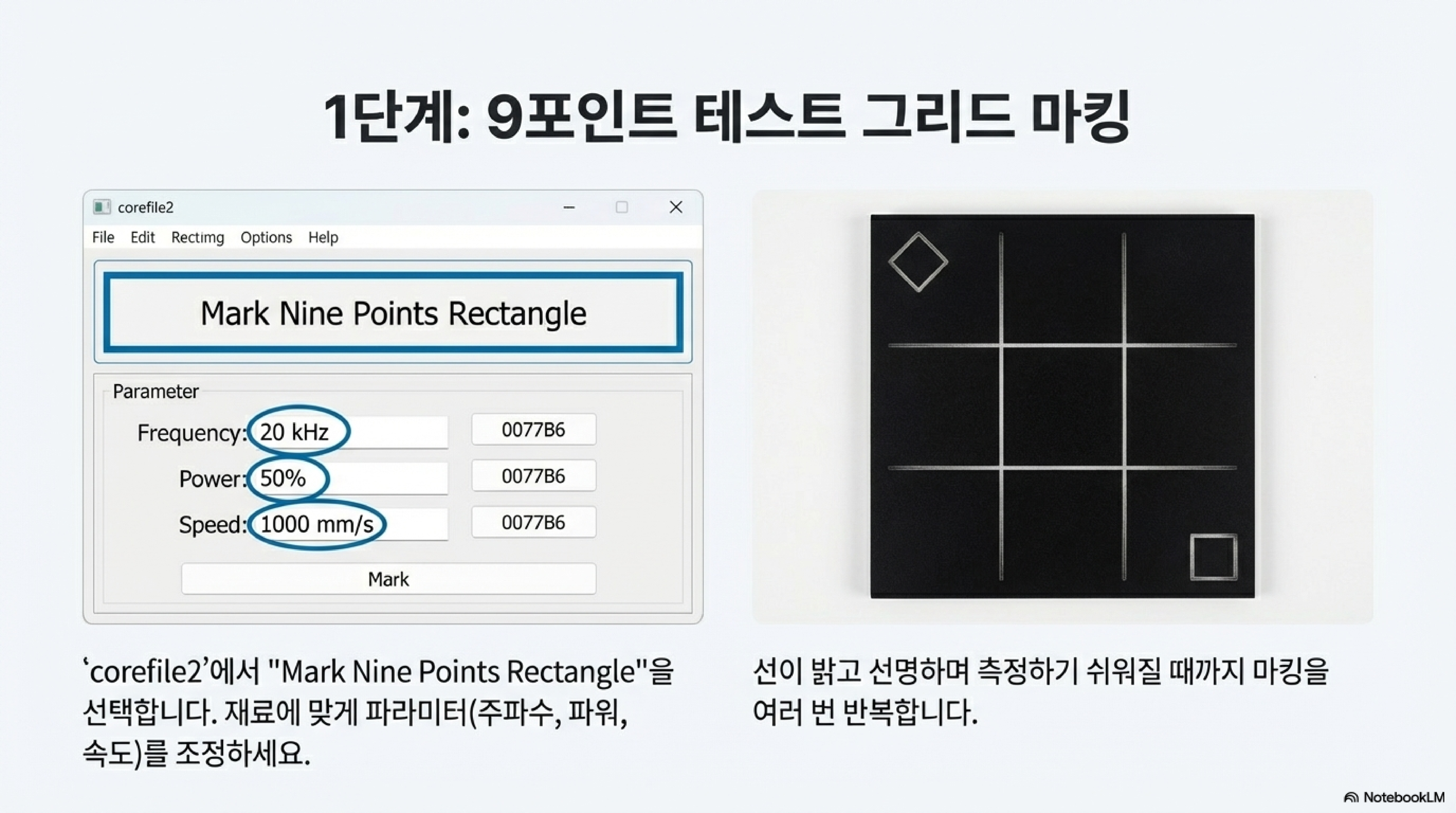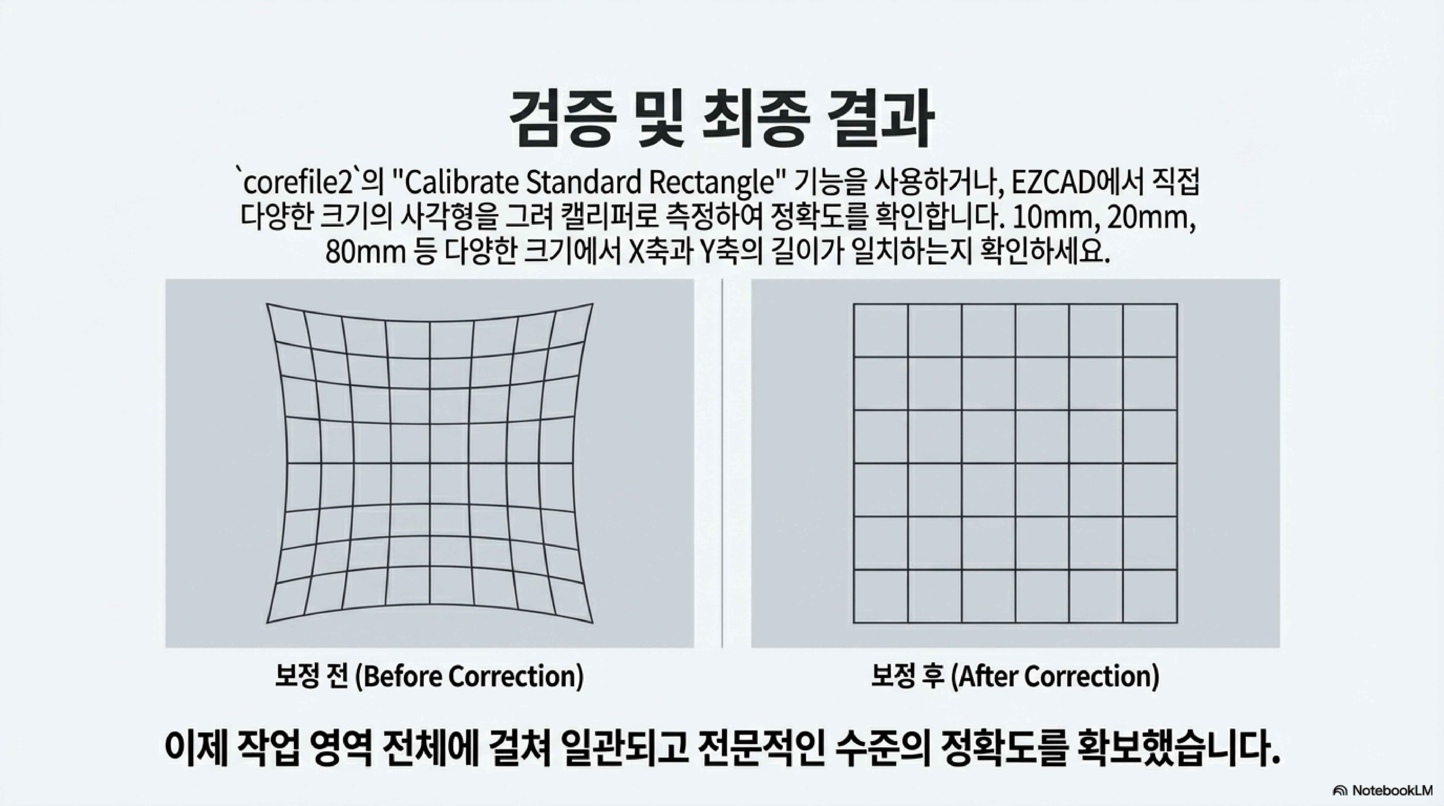 '포컬 스틱(Focal Stick)'은 레이저 렌즈의 정확한 초점 거리를 맞추기 위해 사용하는 물리적인 막대입니다. 영상 속 전문가는 소프트웨어 보정을 시작하기에 앞서, 직접 제작한 포컬 스틱으로 각 렌즈의 물리적 초점부터 완벽하게 맞춥니다. 이 과정이 왜 중요할까요? 초점이 정확하지 않으면, 이후에 소프트웨어로 측정하고 보정하는 모든 데이터가 처음부터 틀어진 값에 기반하게 되기 때문입니다. 즉, 포컬 스틱을 이용한 아날로그적인 초점 설정은 모든 디지털 보정의 정확성을 담보하는 가장 기본적인 선행 조건입니다.