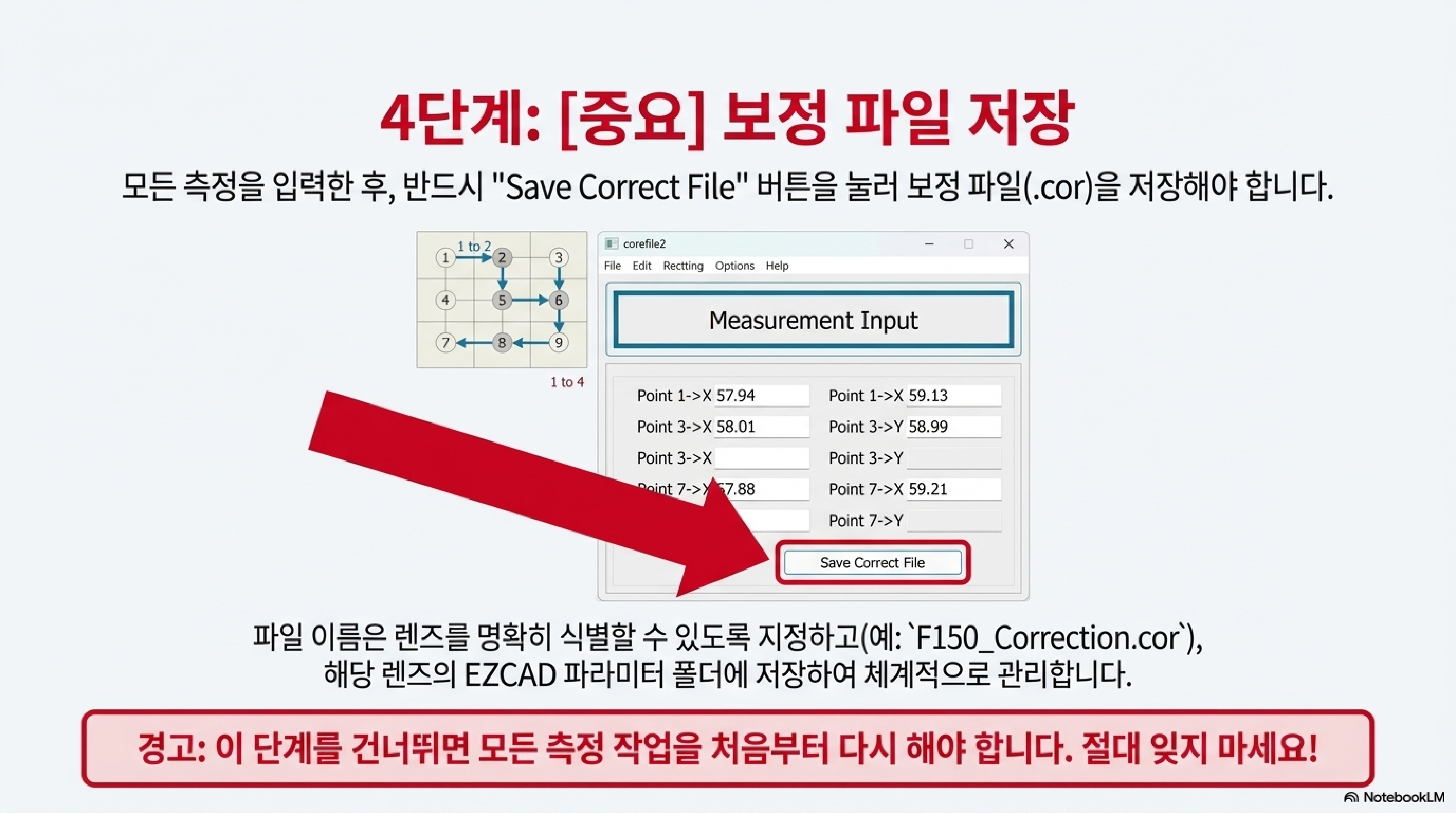 "보정 파일을 저장하는 것을 잊지 마세요. 우리는 방금 그걸 안 했어요. 그래서 저는 이 모든 것을 다시 해야 합니다... 이 실수로부터 교훈을 얻으세요, 여러분."