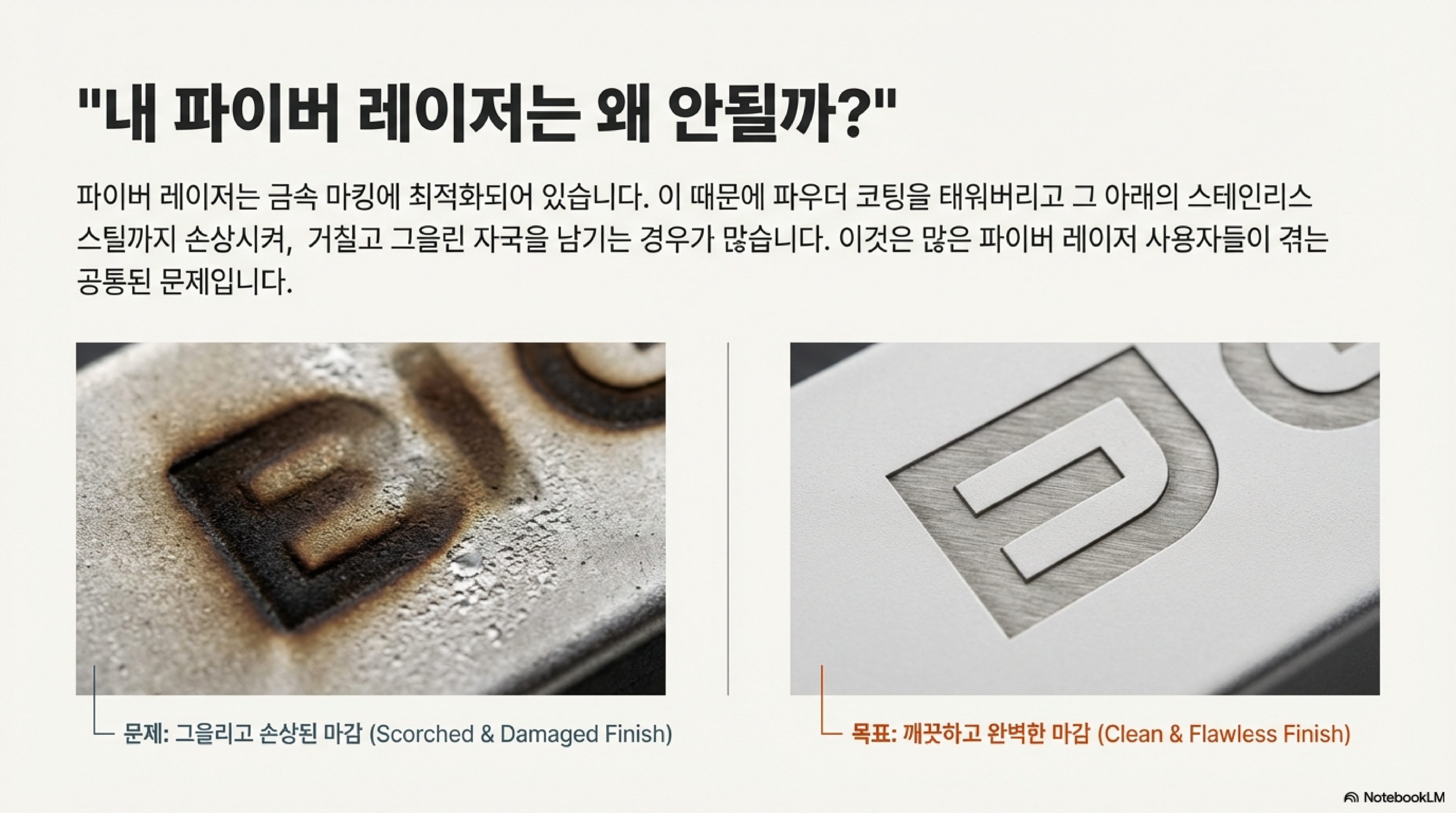파이버 레이저를 보유하고 있지만 파우더 코팅 텀블러에 깔끔한 각인을 하지 못해 답답했던 경험이 있으신가요? CO2 레이저로 작업한 것처럼 깨끗한 결과물을 얻고 싶지만, 번번이 실패하고 계신가요? 많은 파이버 레이저 사용자들이 같은 문제로 어려움을 겪습니다.