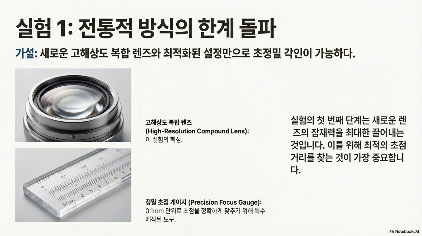 이 모든 실험의 시작점에는 고해상도 복합 렌즈라는 핵심 기술이 있었습니다. 이 렌즈가 만들어내는 극도로 미세하고 선명한 도트가 있었기에, 파워 서플라이의 한계를 시험하고 소프트웨어의 미세한 오류를 발견하는 것 자체가 가능했습니다. 이는 적절한 부품이 장비의 잠재력을 질문할 수 있는 '열쇠'가 될 수 있음을 보여줍니다.