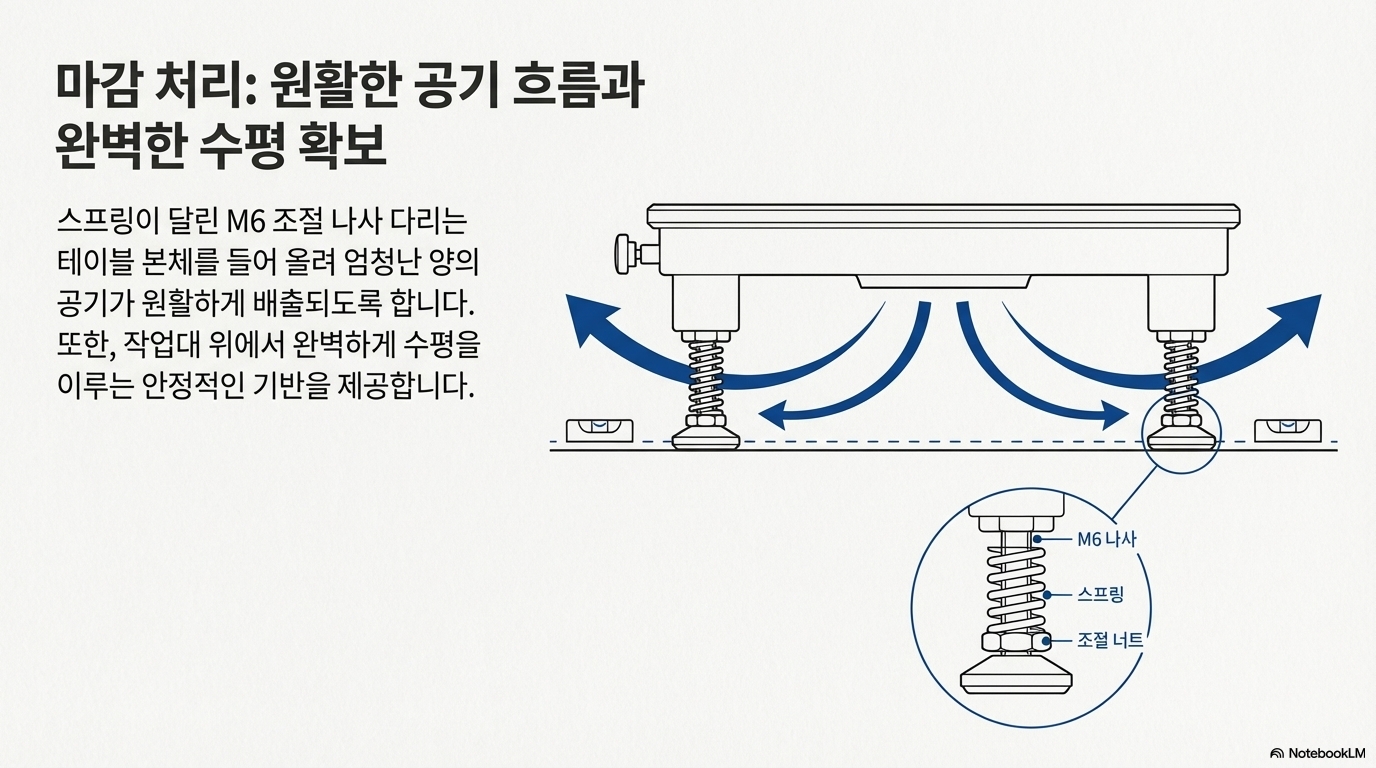 프로젝트는 난관에 부딪혔습니다. 진공 테이블이 약간 휘어진 합판을 평평하게 고정하지 못할 만큼 흡입력이 충분히 강하지 않았던 것입니다. 하지만 제작자는 이를 실패로 규정하지 않았습니다. 그는 진공 기능을 포기하는 대신, 진공 테이블의 본질적인 특성인 '완벽하게 평평한 작업대'라는 점에 주목했습니다. 그리고 테이블 가장자리에 나사를 박아 합판을 기계적으로 당겨서 평평하게 고정하는 기발한 해결책을 찾아냈습니다.