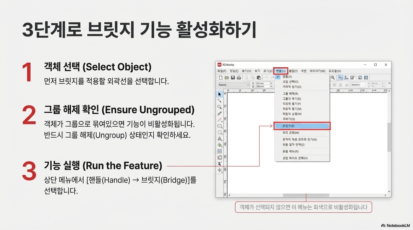 핵심 비결 2: RDWorks에서 '브리지' 기능 100% 활용하기